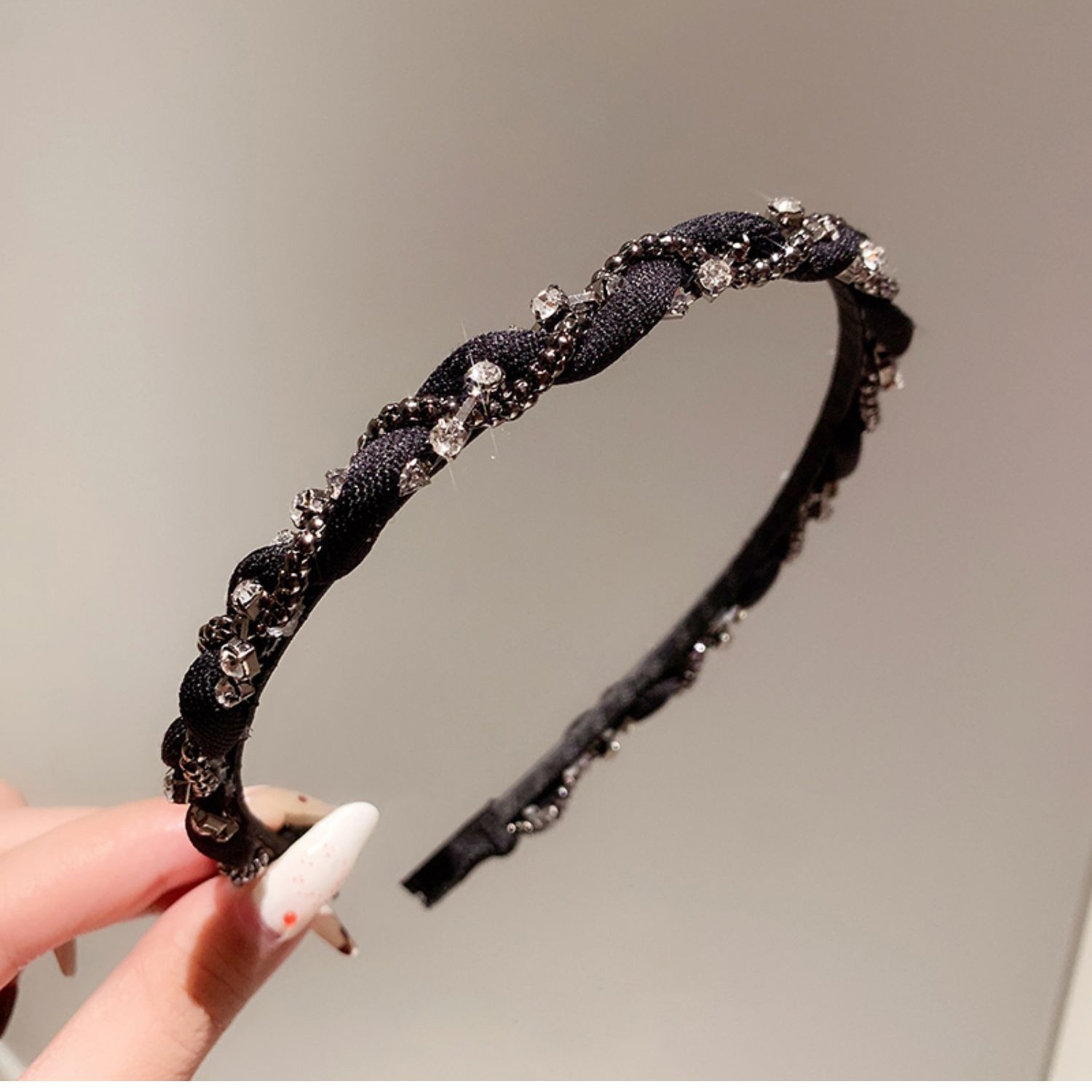 韩国东大门镶钻缠绕发箍时尚枪黑色头饰简约日常百搭发饰新款