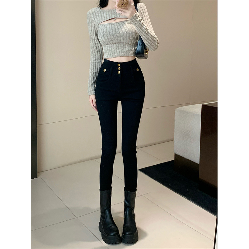新款秋冬加绒加厚高腰弹力紧身显瘦