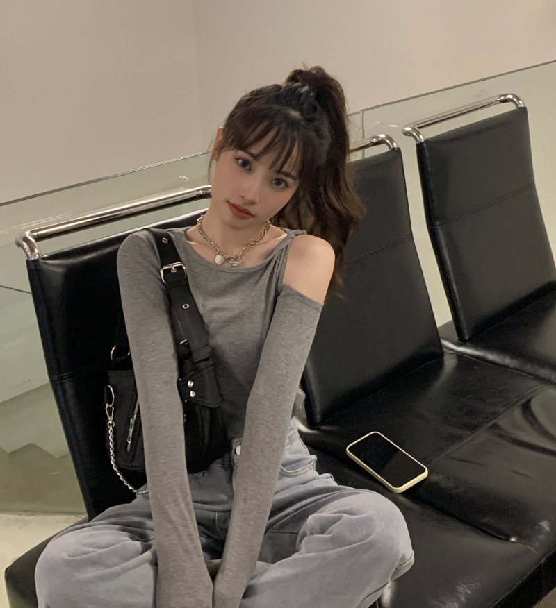秋冬时尚百搭上衣设计感辣妹露肩T恤女新款长袖修身内搭打底衫潮