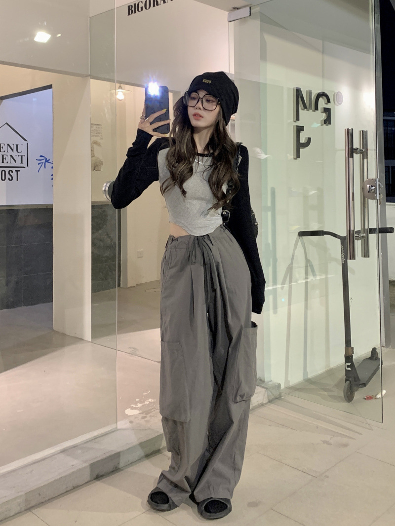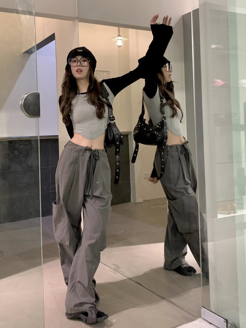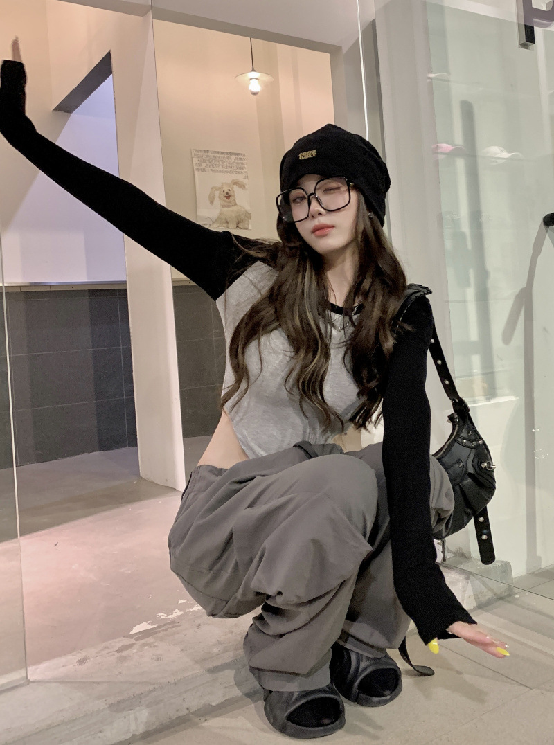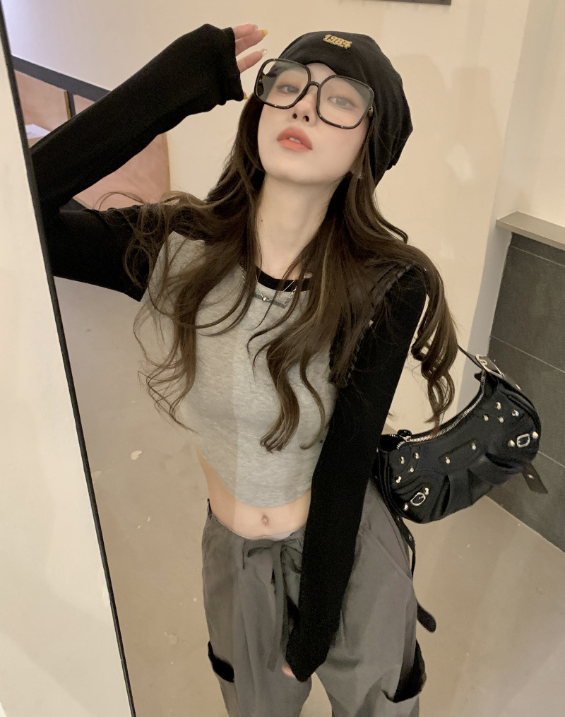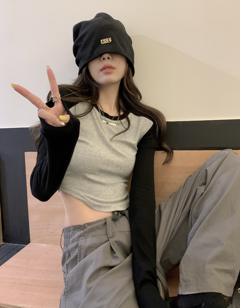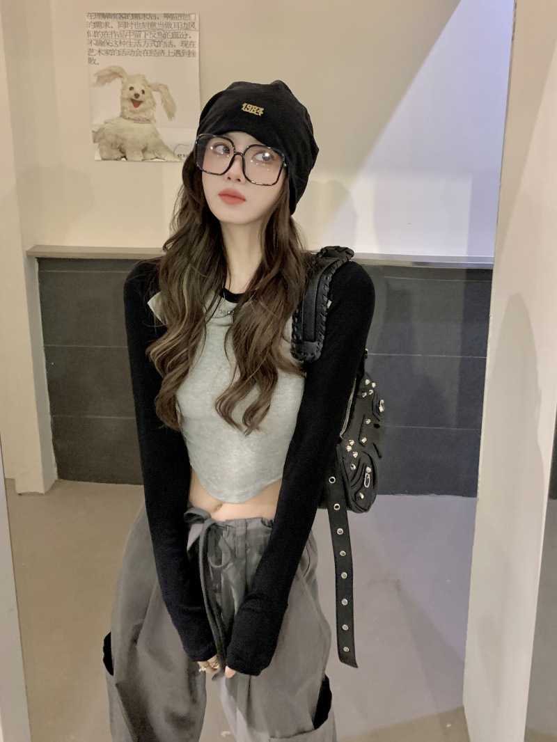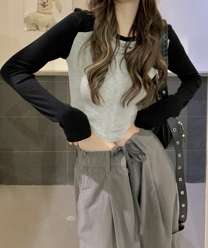 修身内搭打底衫美式不规则短款T恤女装秋季新款辣妹长袖上衣