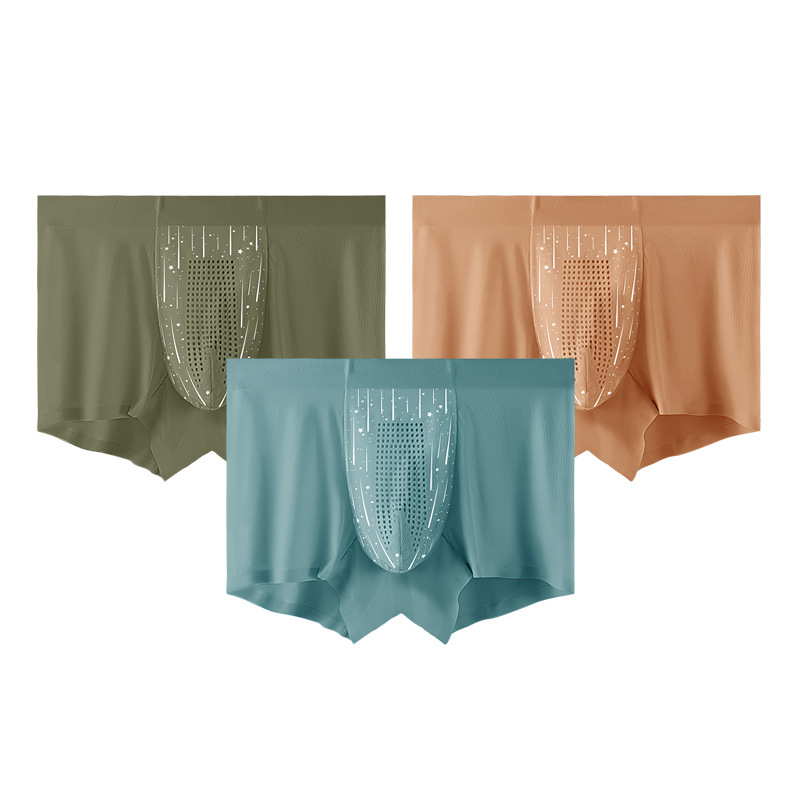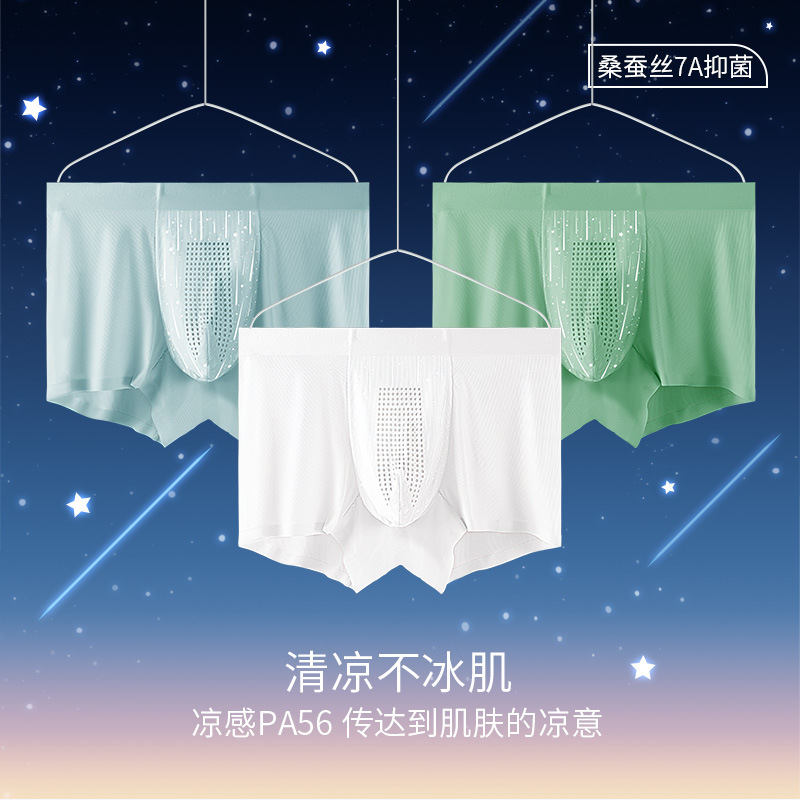 春夏新款男士冰丝内裤流星雨7A抑菌男士内裤蚕丝无痕男式平角裤
