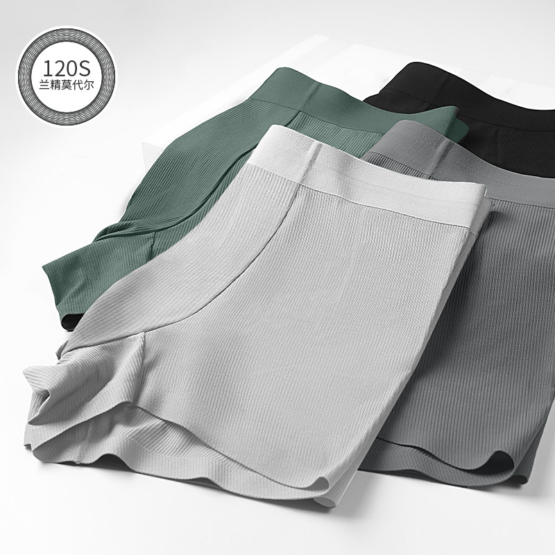 高端120s兰精莫代尔男士内裤中腰透气罗纹平角裤抑菌裆男式四角裤