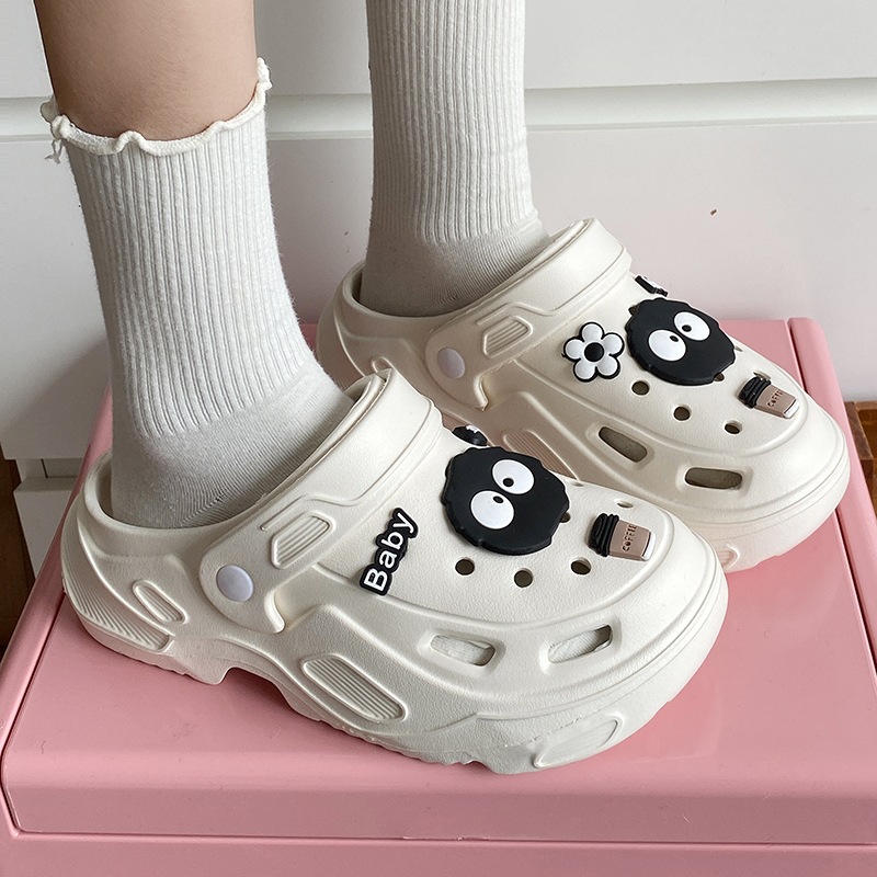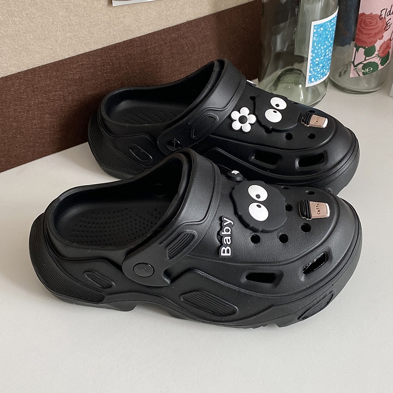 踩屎感洞洞鞋女士夏季新款可爱厚底增高防滑包头拖鞋女款外穿
