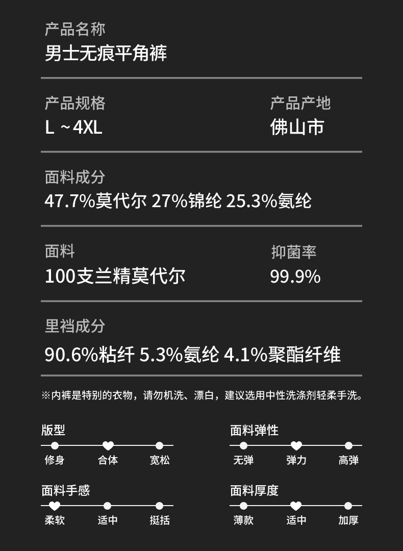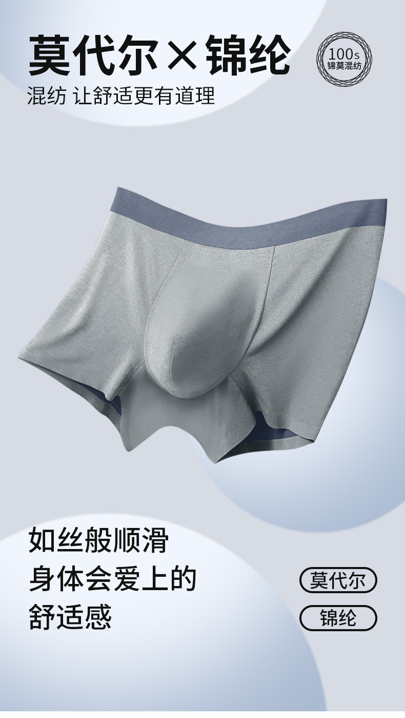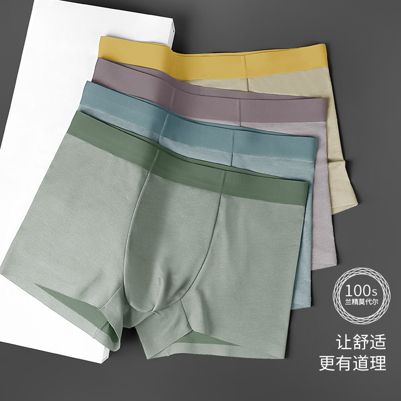 高端100S双面兰精莫代尔男士内裤丝滑无痕平角裤男式中腰抑菌短裤