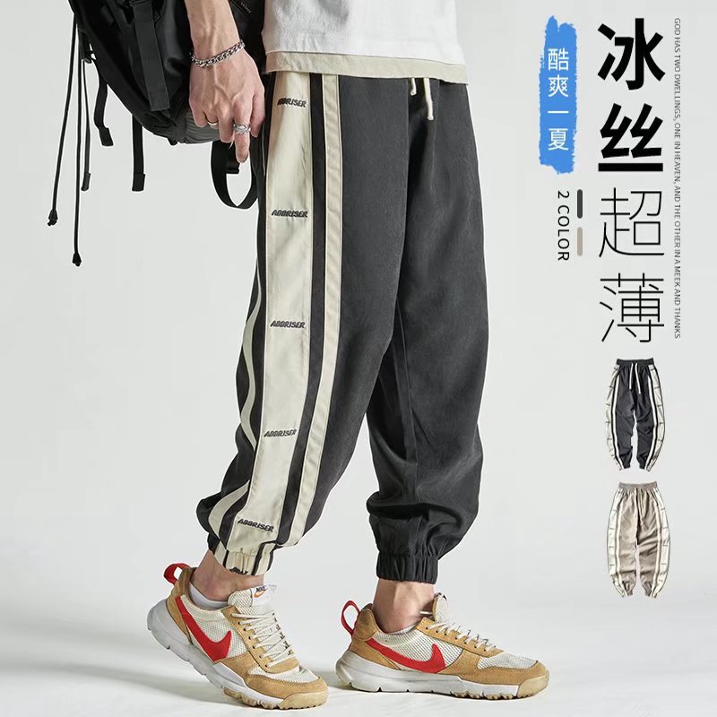 工装裤男夏季薄款束脚运动休闲长裤子男士潮牌宽松百搭冰丝九分裤
