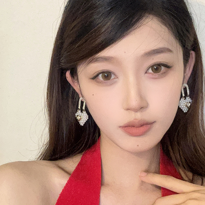 温柔气质爱心珍珠耳环小众设计法式复古耳环新款百搭耳饰女