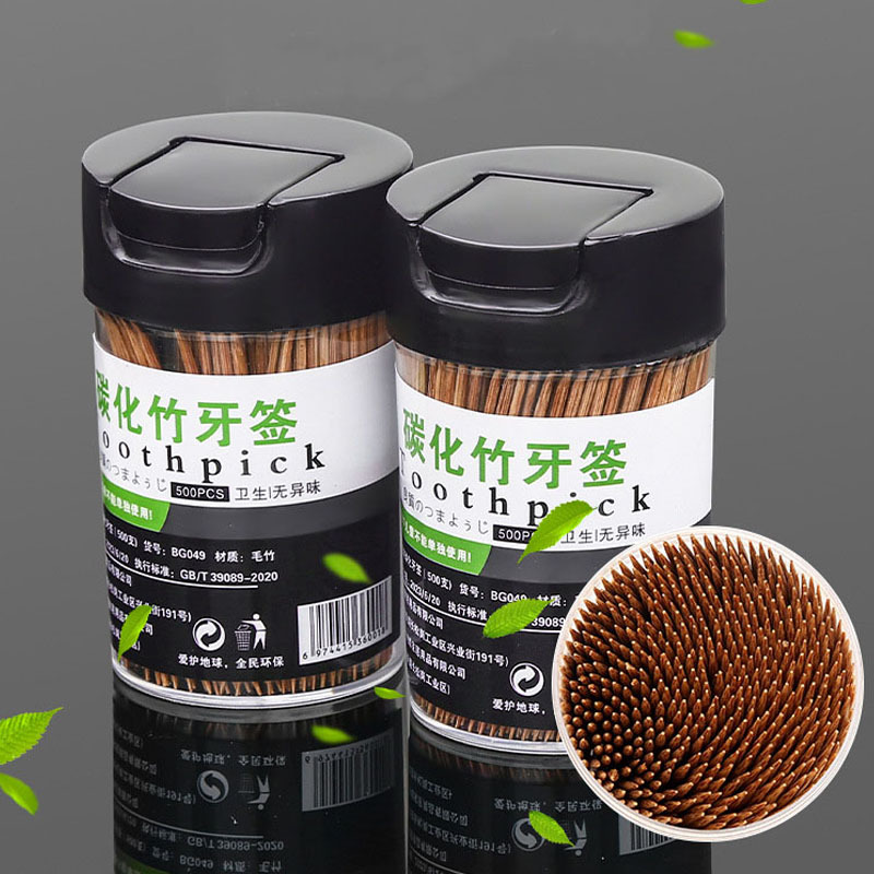 碳化牙签家用一次性水果叉竹制水果签创意500支筒装双头细牙签