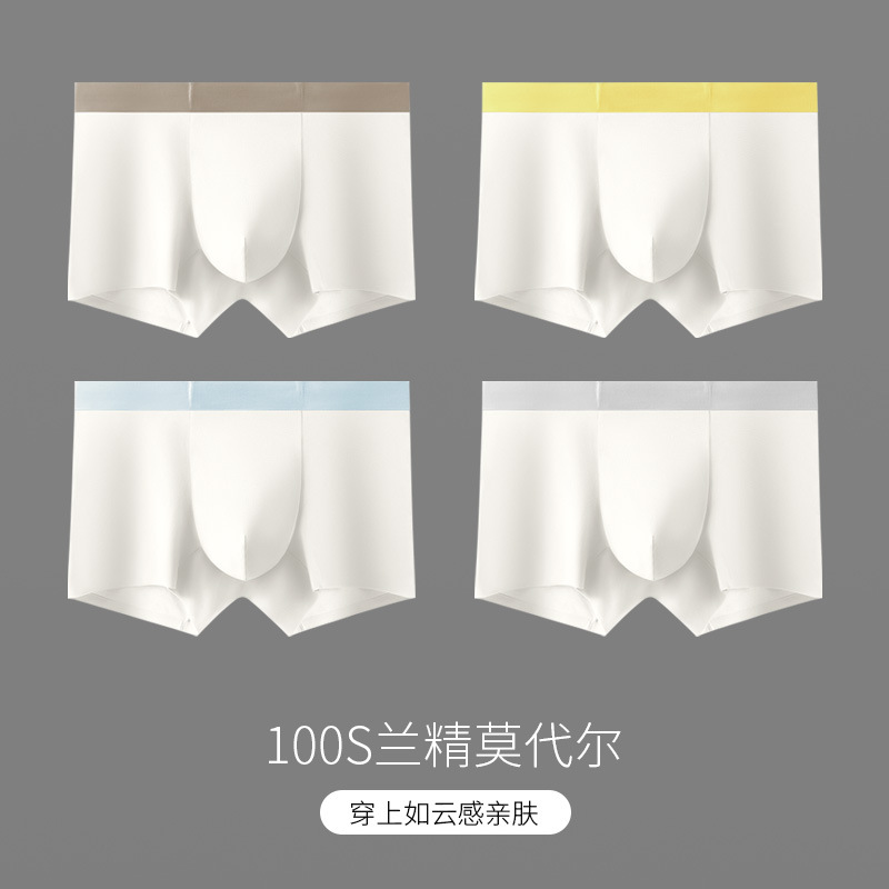 男款轻奢100S兰精莫代尔内裤白色无痕男士平角裤金腰带男式四角裤