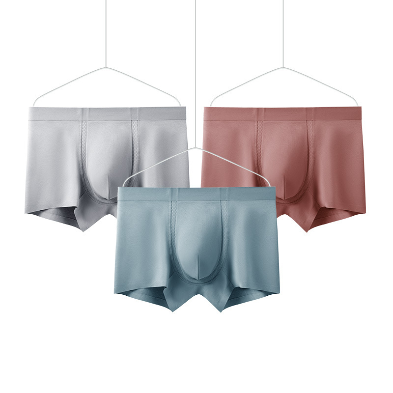 专利品男士抗菌内裤夏季透气网孔平角裤莫代尔蚕丝内裤男个性裤头