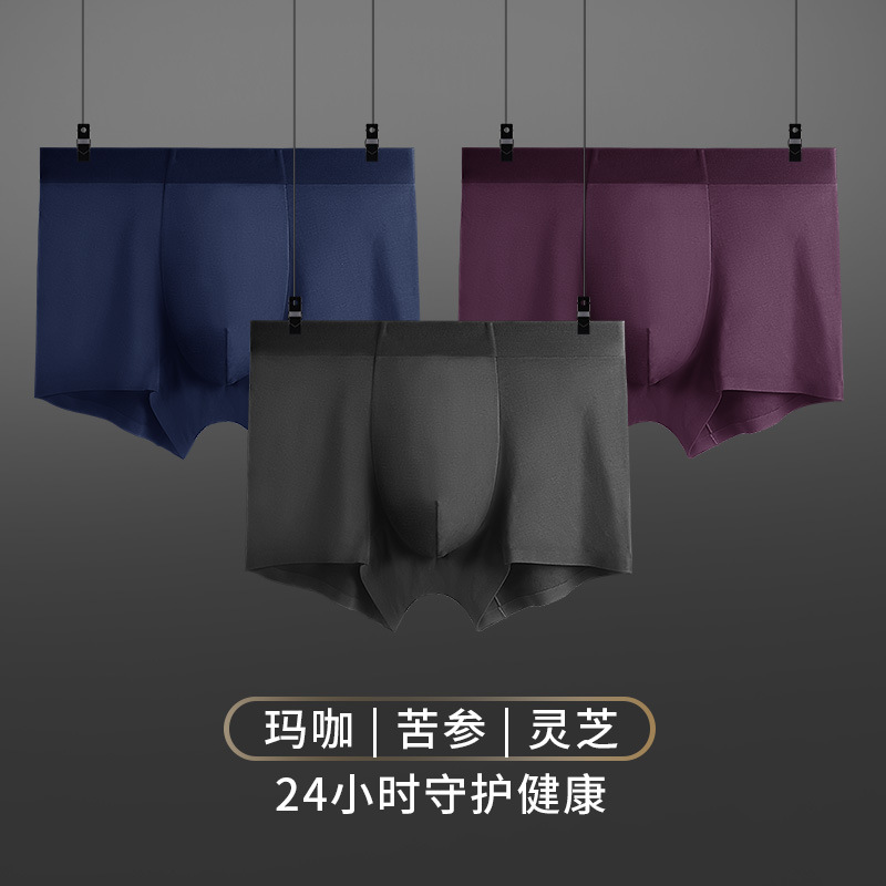 高级感男士无痕内裤养生内裤灵芝玛咖裆男士平角裤莫代尔盒装内裤