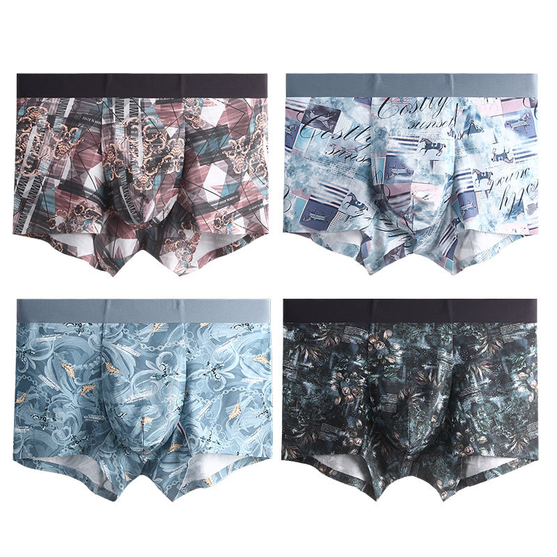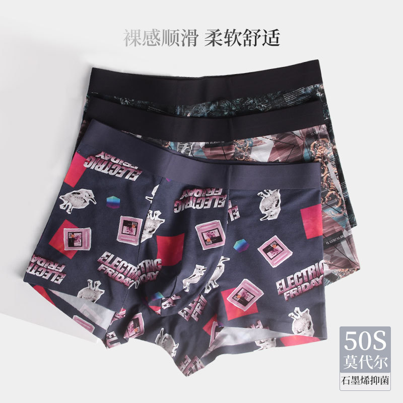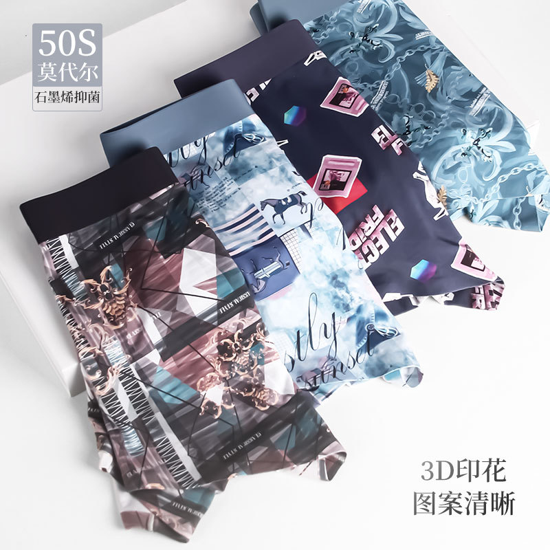 潮男内裤男士印花内裤男士青年平角裤莫代尔裤头四角裤