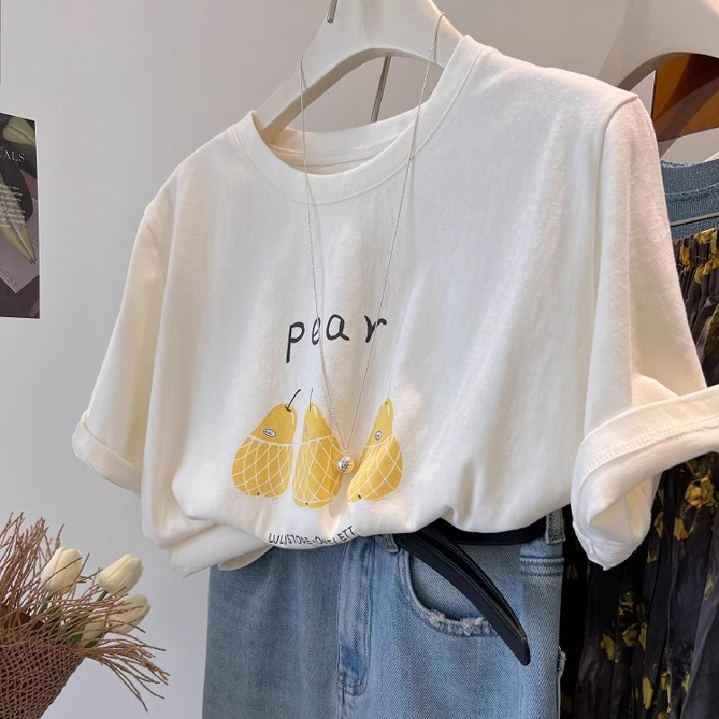 甜系清新减龄小黄梨印花印花短袖T恤女夏季新款宽松正肩体恤上衣