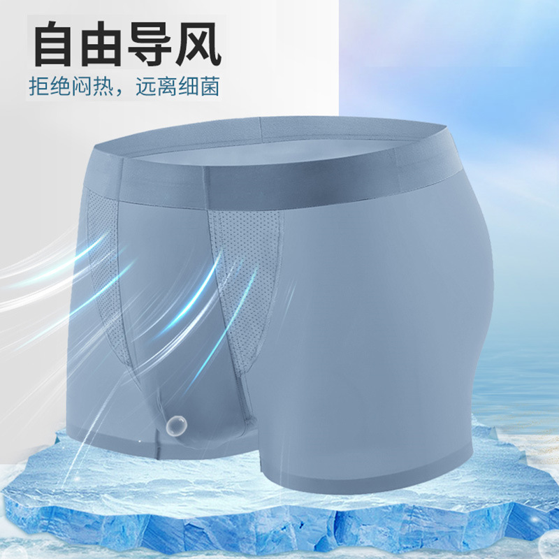 夏季新品冰丝内裤男透气网孔男士平角裤性感无痕男内裤中腰裤头薄