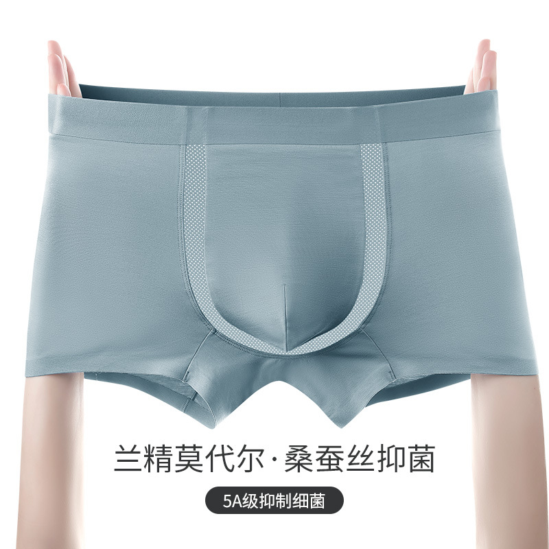 U型透气网眼男士无痕内裤莫代尔纯色男式平角裤蚕丝裆抑菌裤头