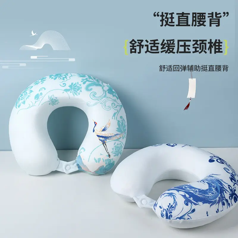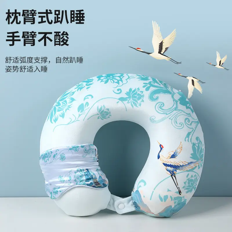 中国风u型枕记忆棉护颈枕配眼罩国潮节日礼品颈枕加眼罩