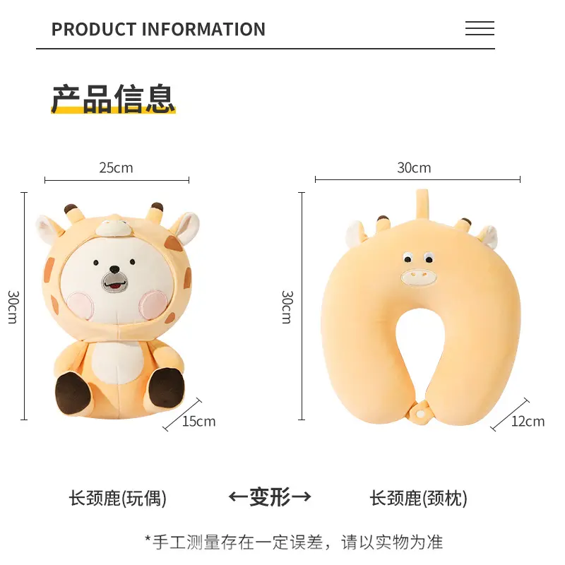 新款卡通变形枕u型枕可爱长颈鹿公仔变颈枕二合一创意礼品