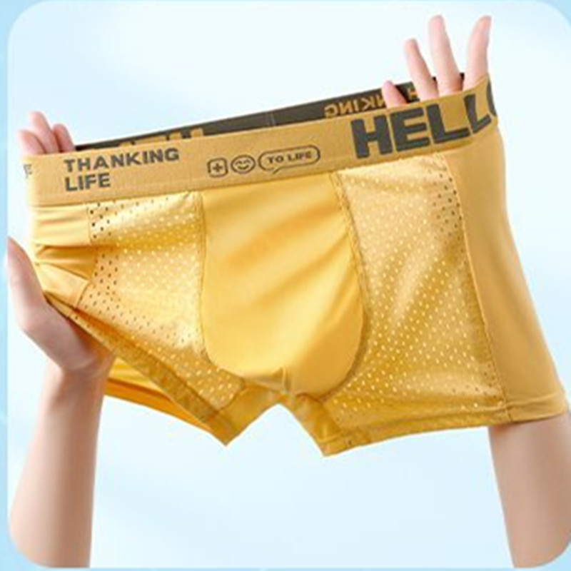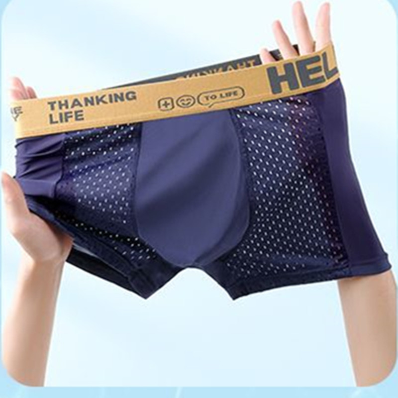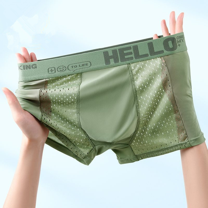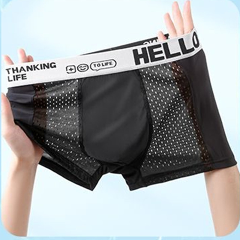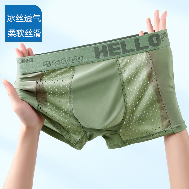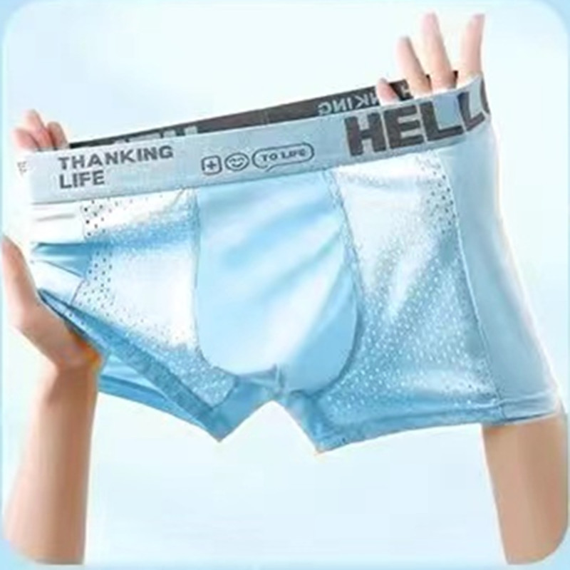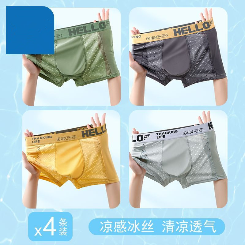 新款冰丝男士内裤平角裤冰凉透感青年透气四角短裤头