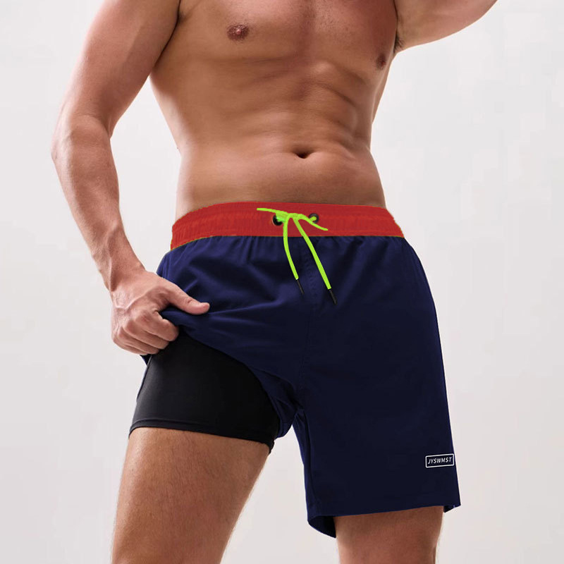 男士泳裤防尴尬男泳衣速干沙滩裤新款温泉泳裤双层带口袋休闲