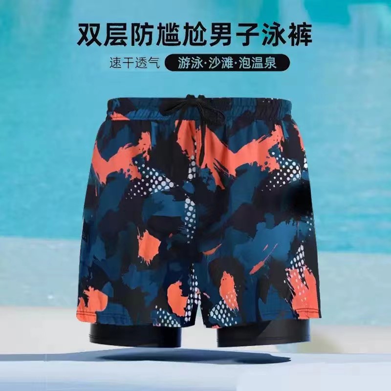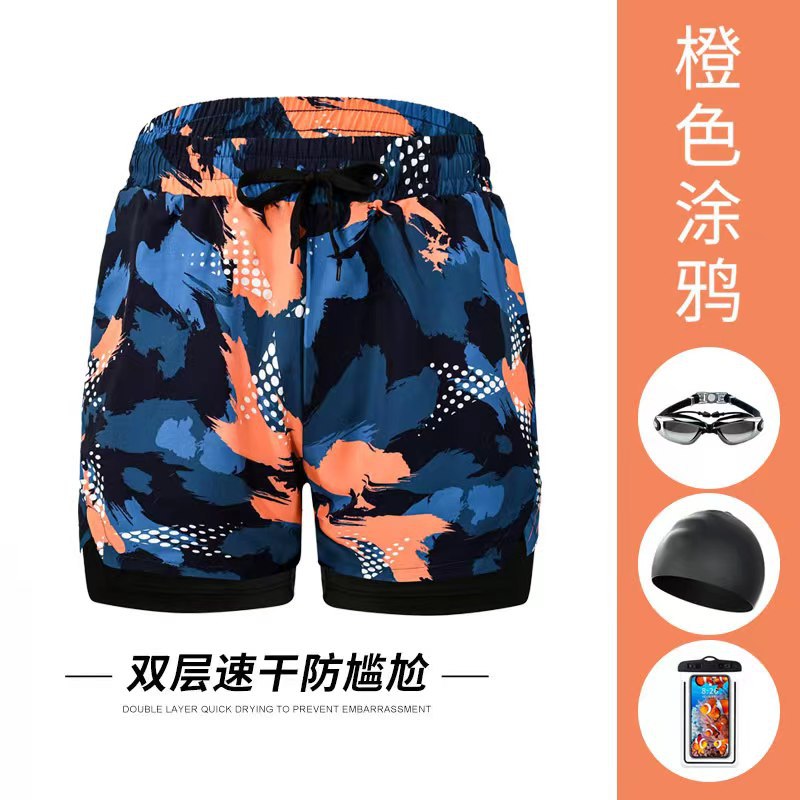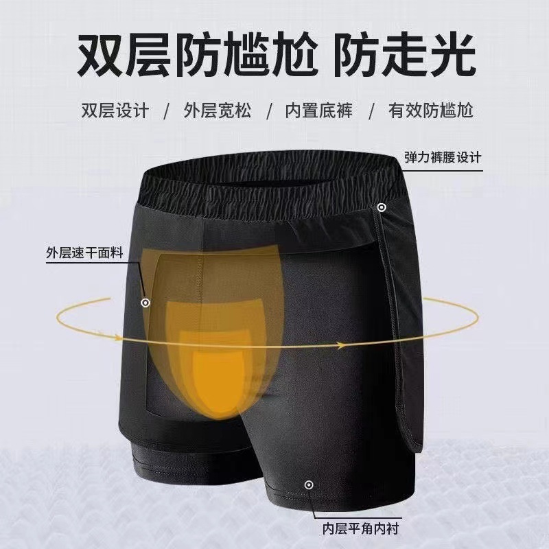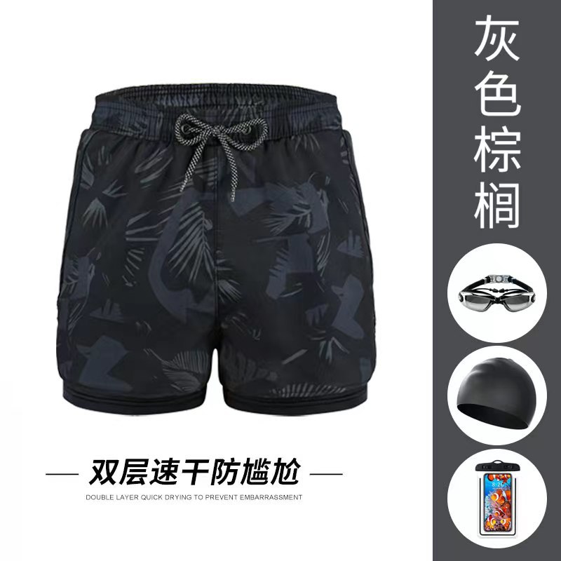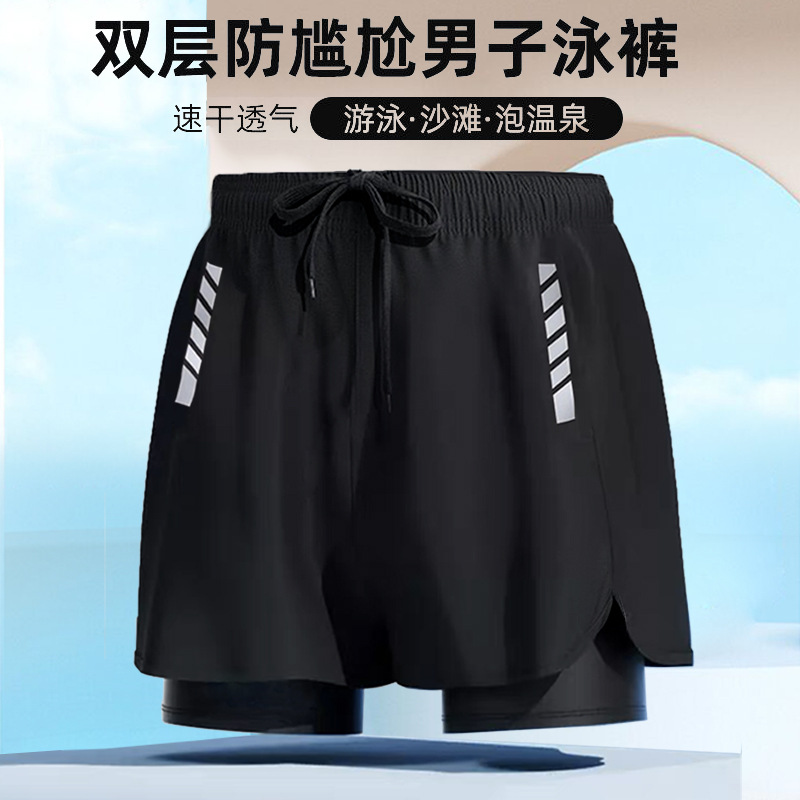 男士泳裤双层防尴尬速干大码平角泳衣专业温泉游泳装备沙滩游泳裤