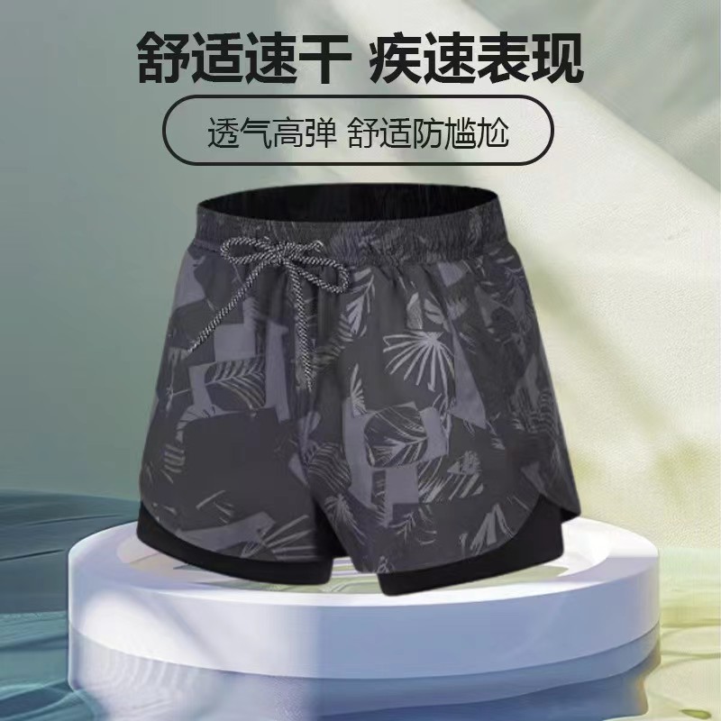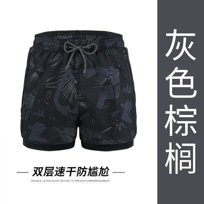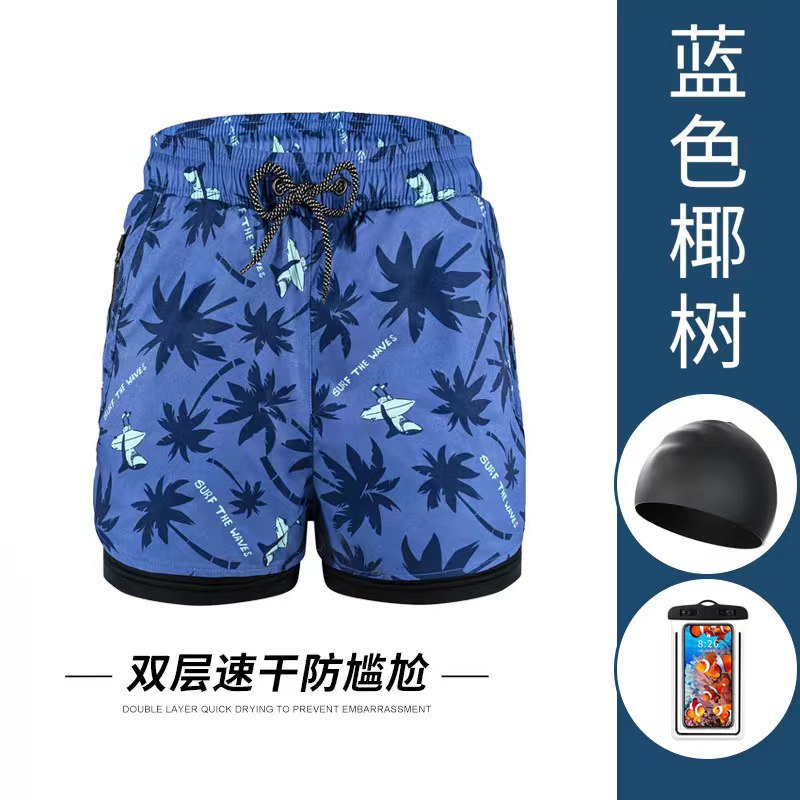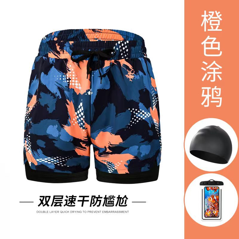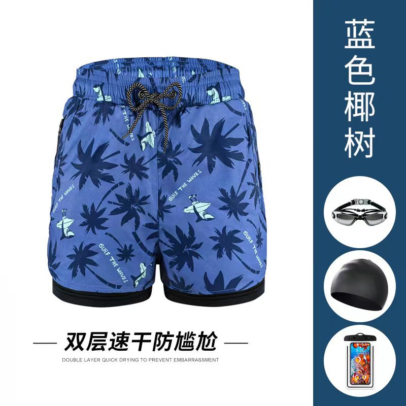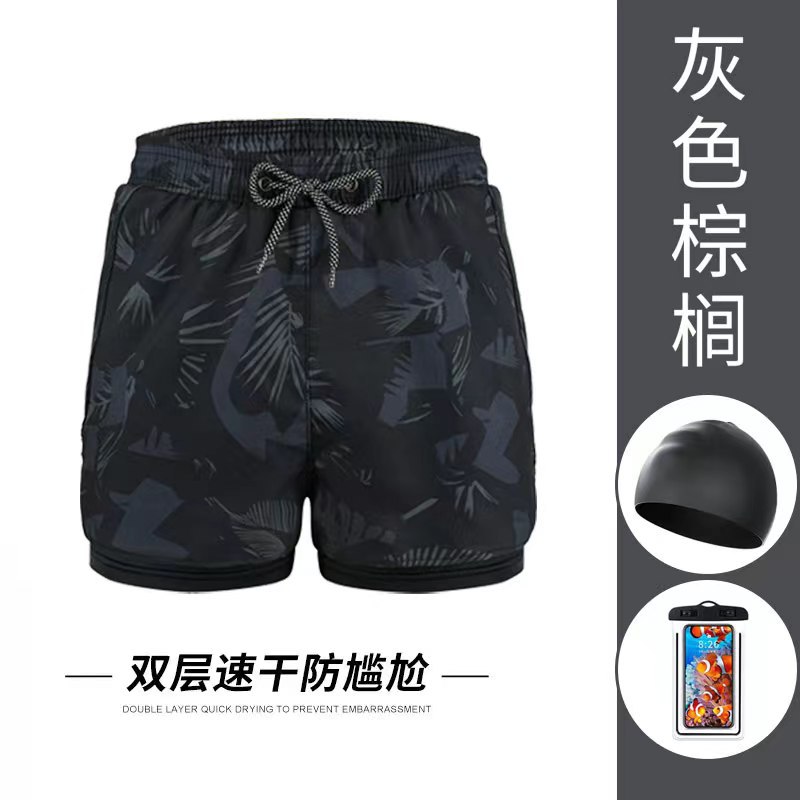 男士泳裤双层防尴尬速干大码平角泳衣专业温泉游泳装备沙滩游泳裤