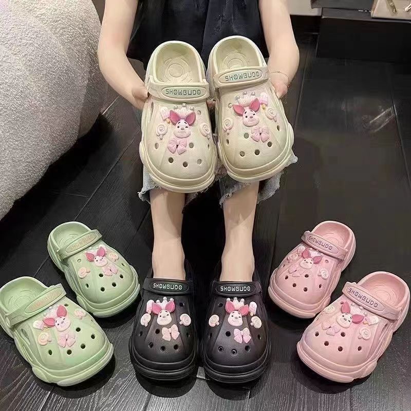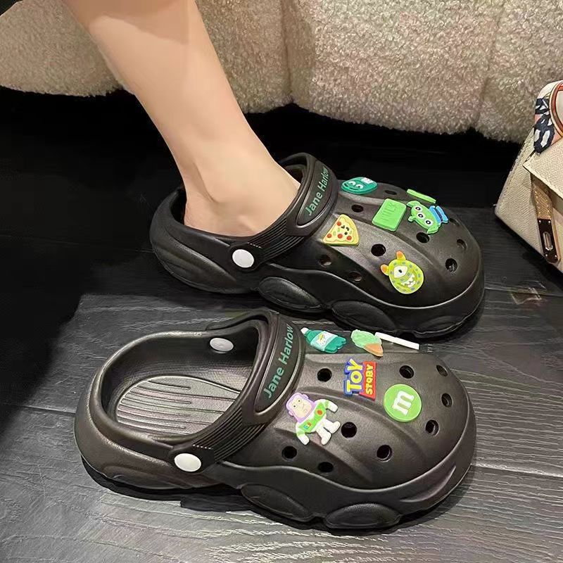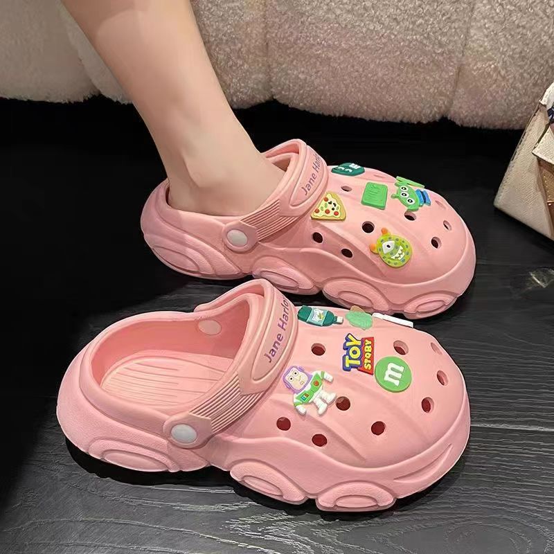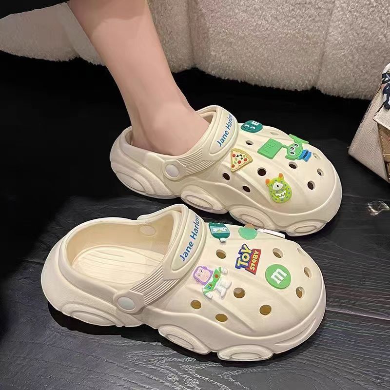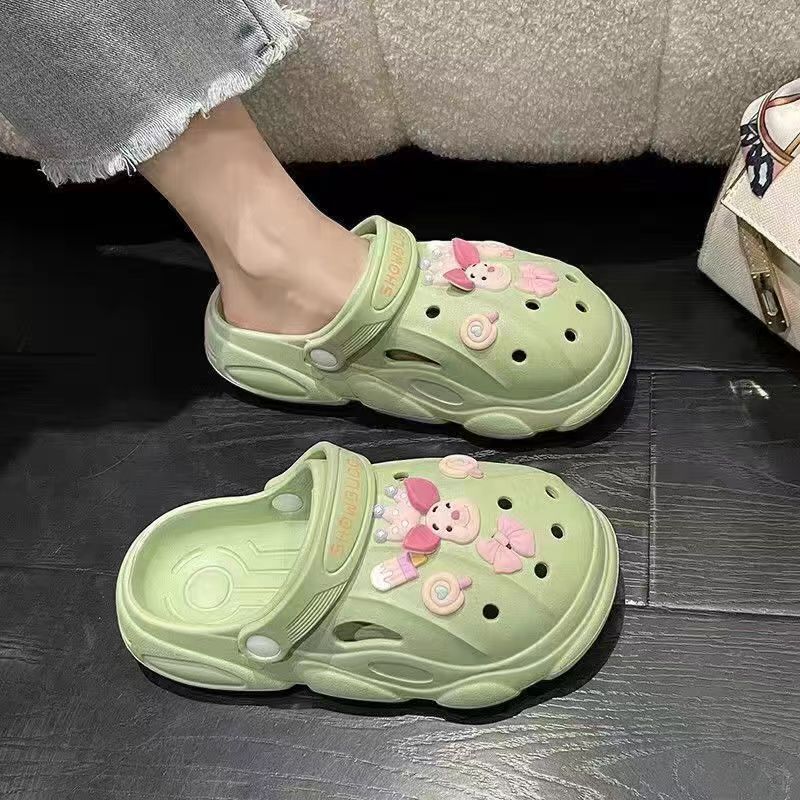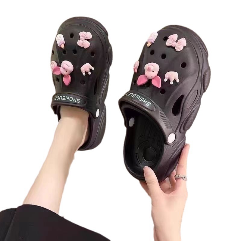 踩屎感卡通洞洞鞋女夏款外穿室内家居防滑增高包头厚底凉拖鞋耐磨