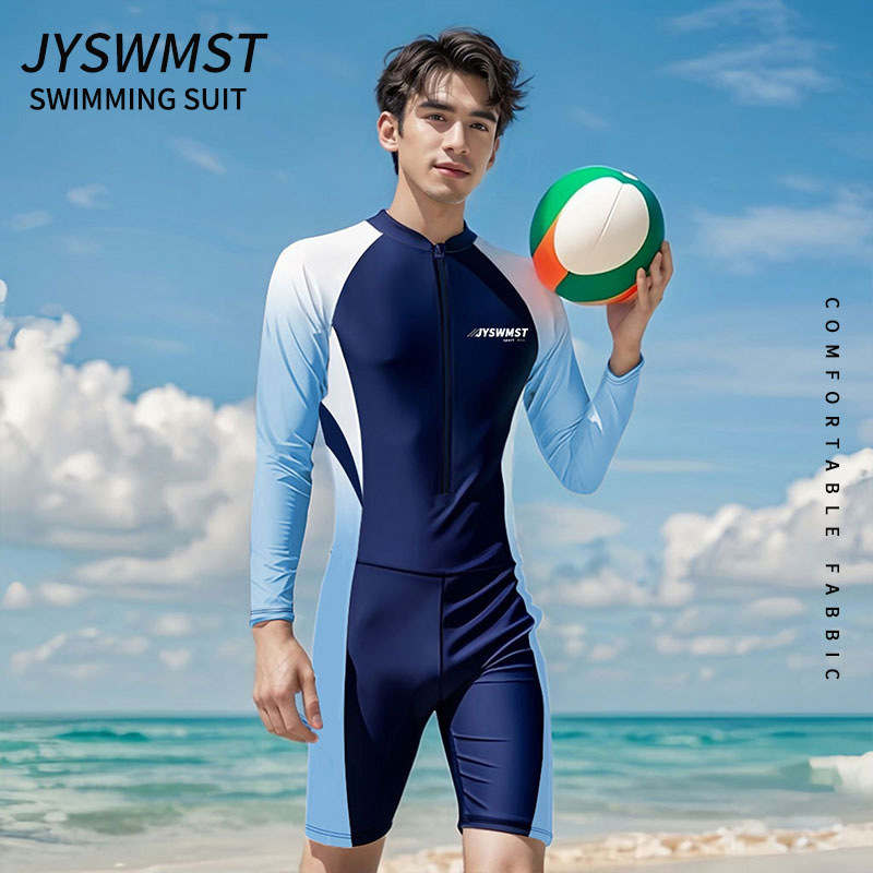 连体男士游泳衣成人儿童青少年大码胖童专业长袖长裤防晒泳裤套装
