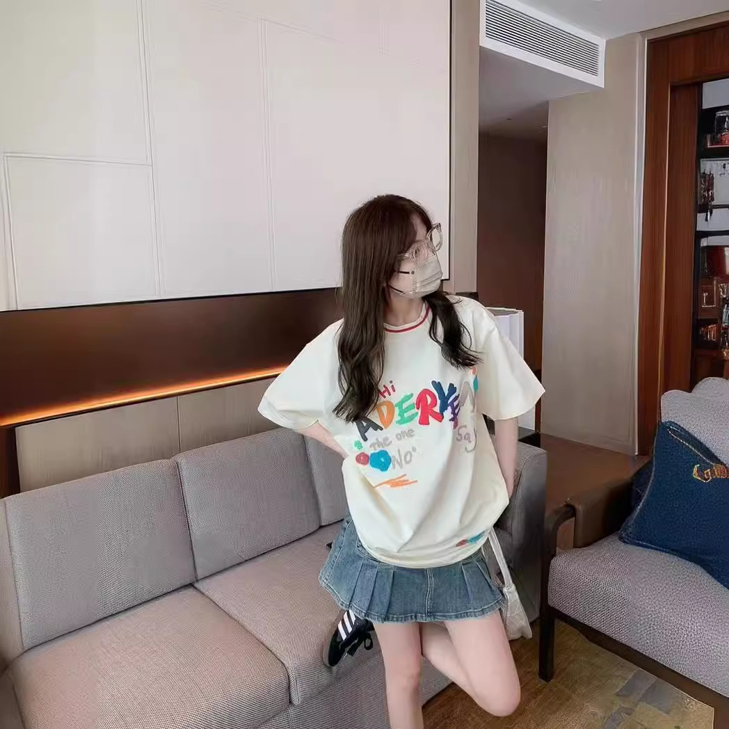 即墨现货 ader春夏圆领短袖女潮牌街头宽松慵懒风情侣t恤上衣