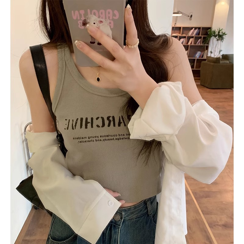 螺纹吊带小背心女春夏u领美式复古遮副乳无袖外穿纯欲打底小上衣