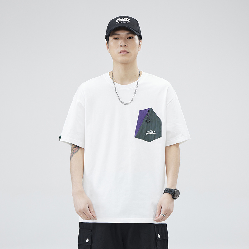 高街纯棉短袖T恤男士2025夏季潮牌撞色拼接口袋酷帅休闲上衣