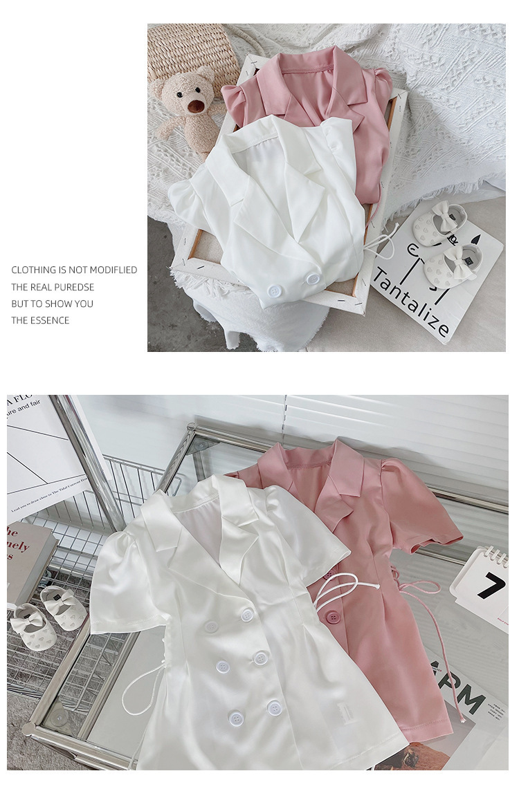 2025夏季女童西装领连衣裙新款韩版儿童时髦双排扣泡泡袖童裙