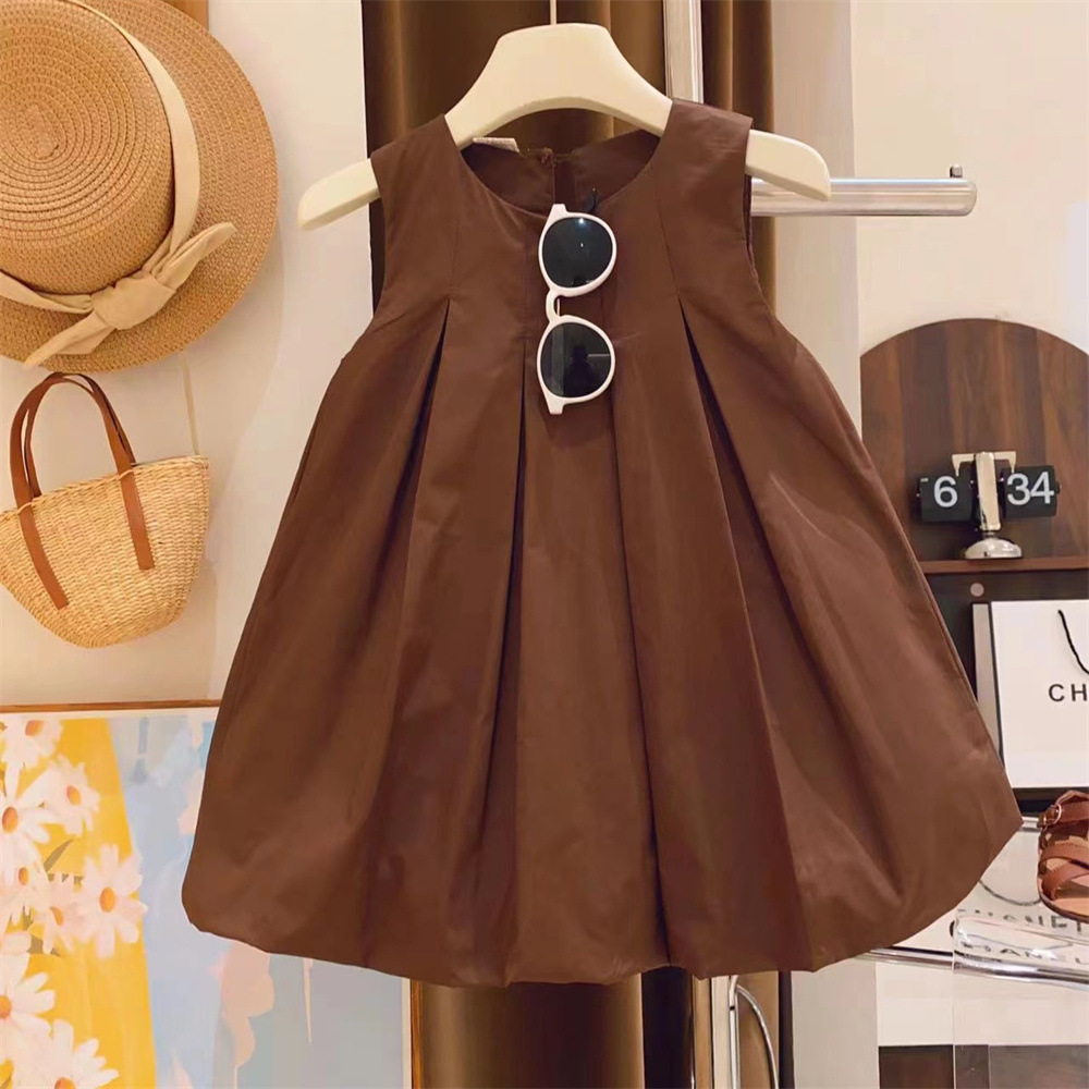 新品女童纯色洋气百褶花苞气质款背心公主裙2025夏装中小童连衣裙