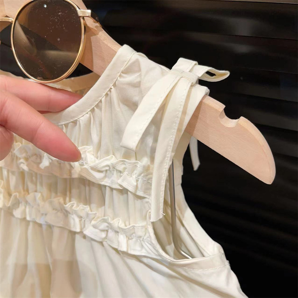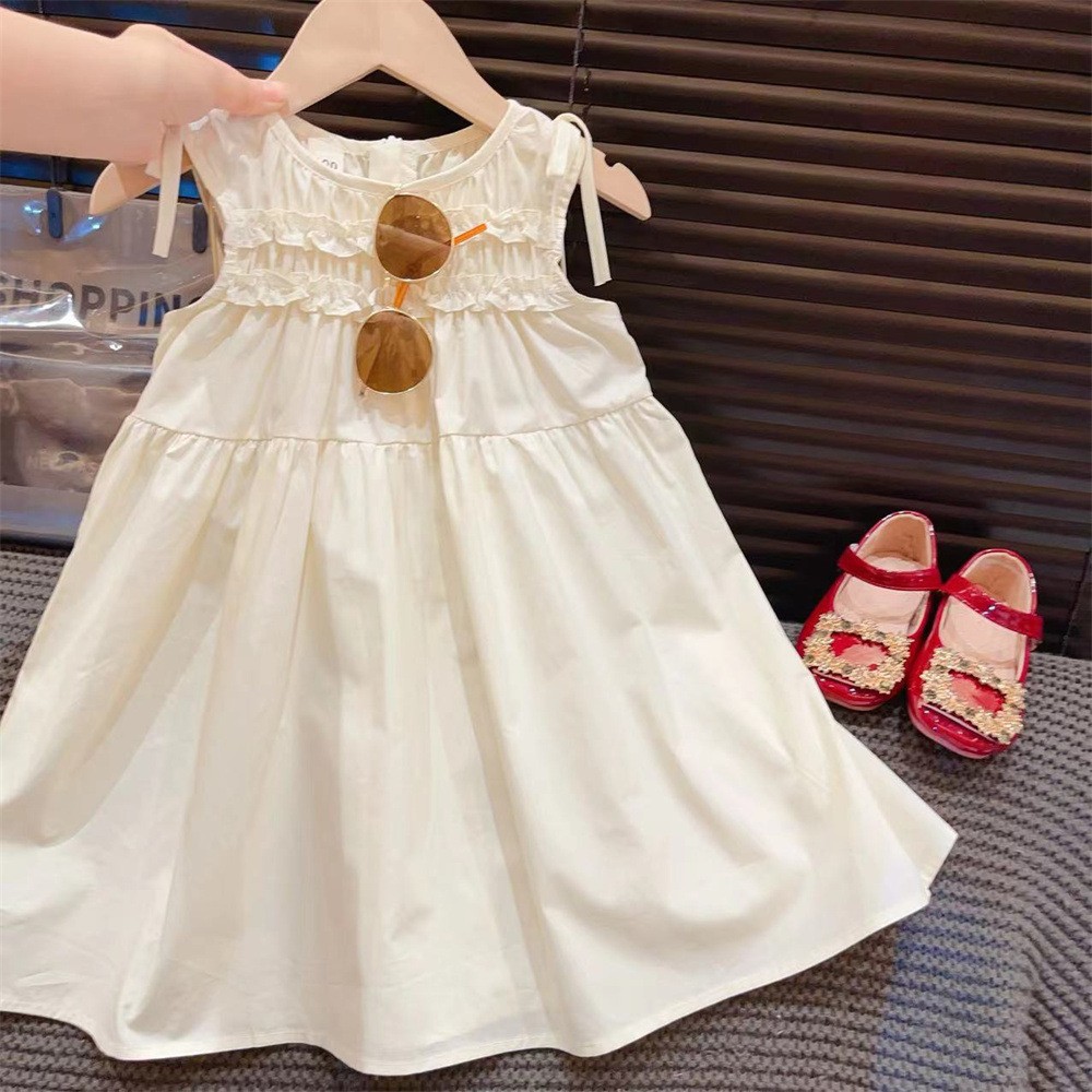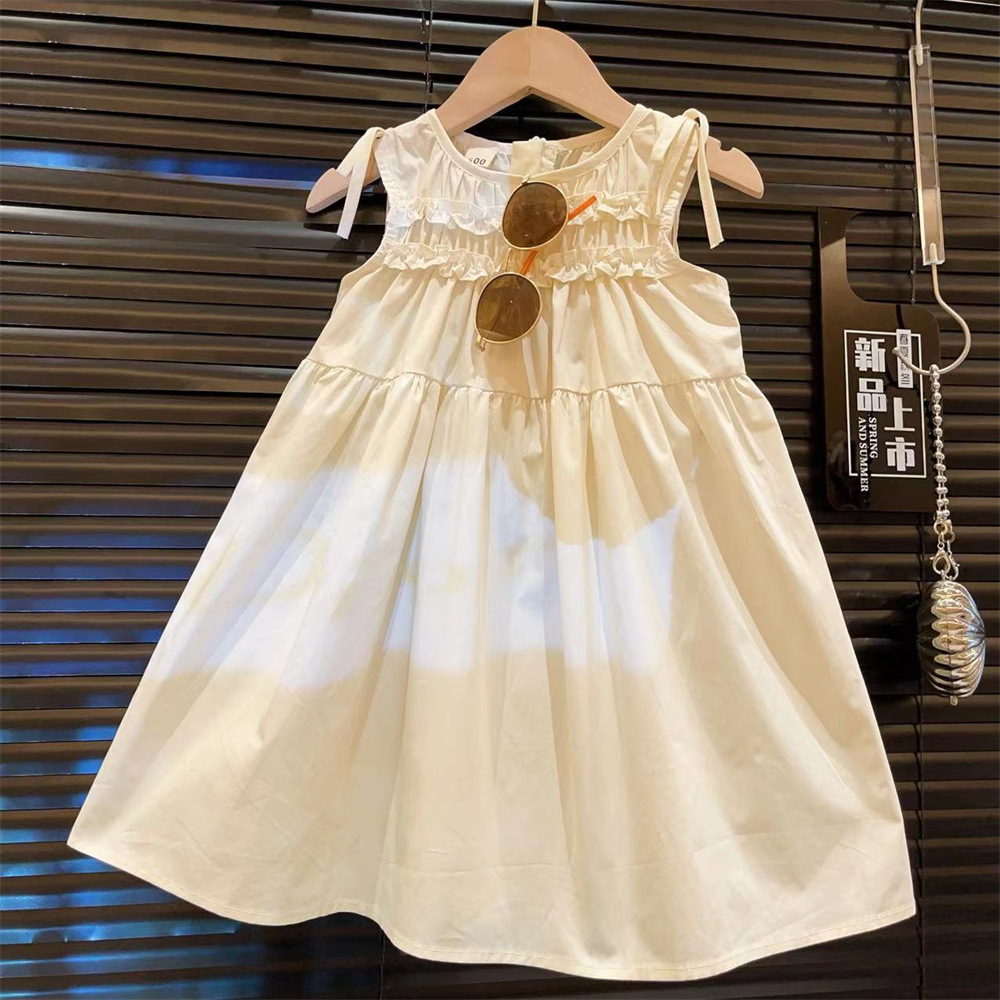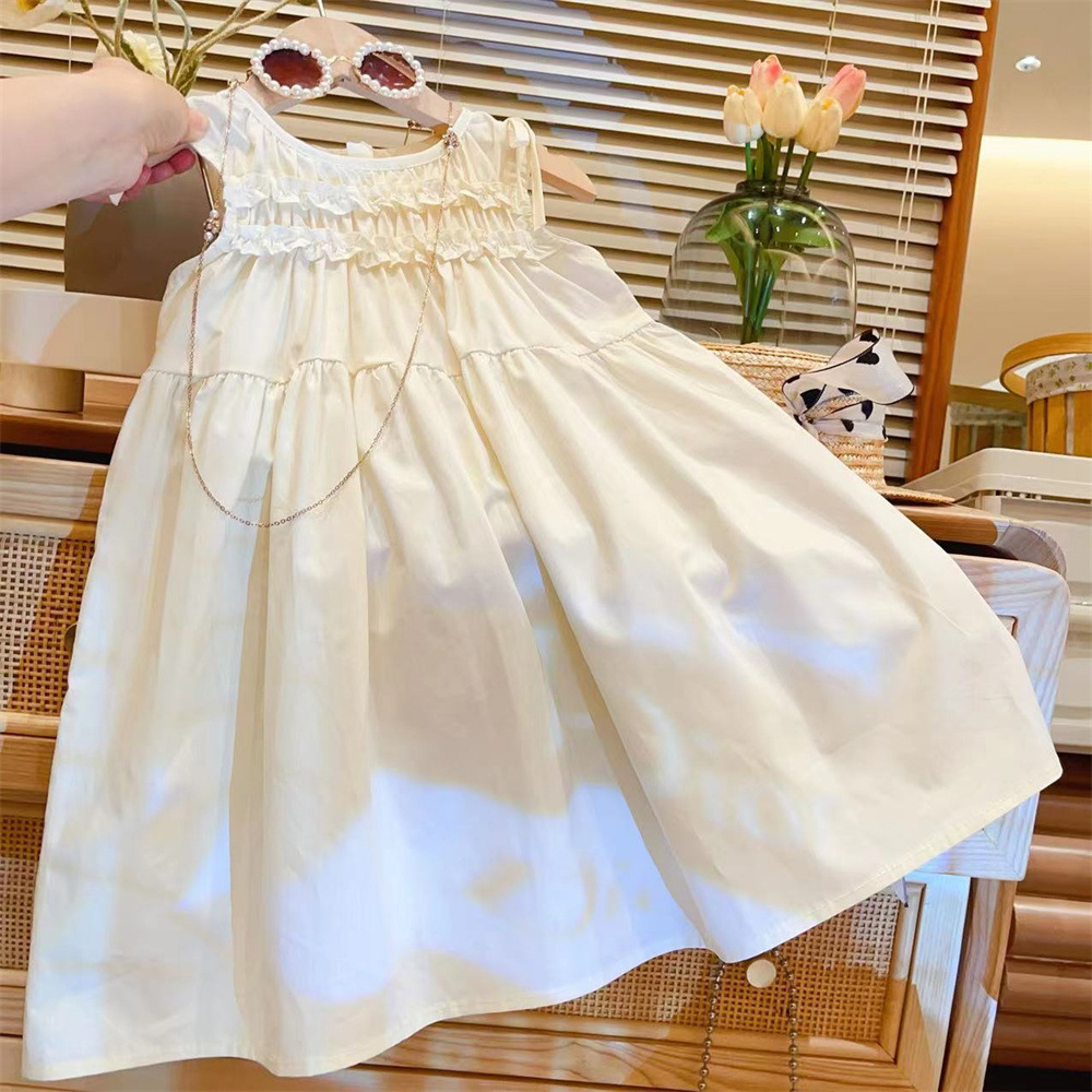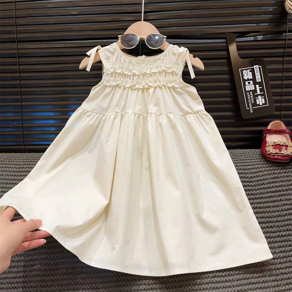 新品女童无袖夏装连衣裙2025韩版时髦儿童花边纯色背心小清新裙子