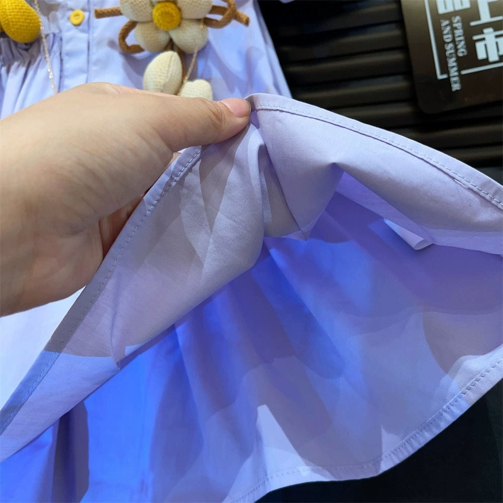 女童时尚娃娃领连衣裙夏季新款洋气立体太阳花百褶公主连衣裙
