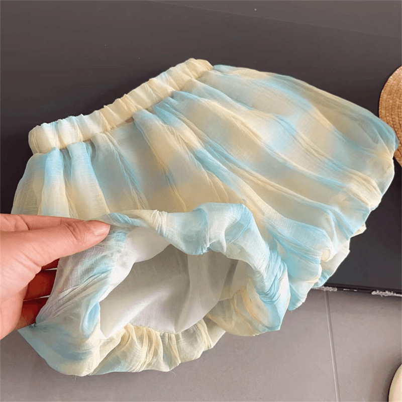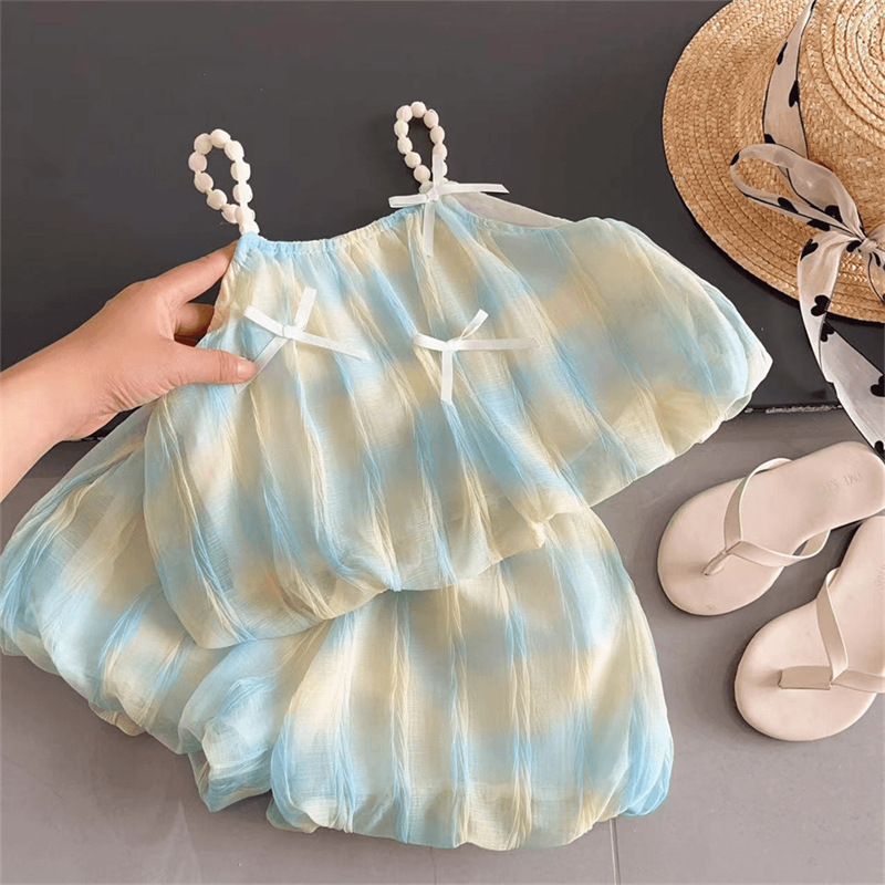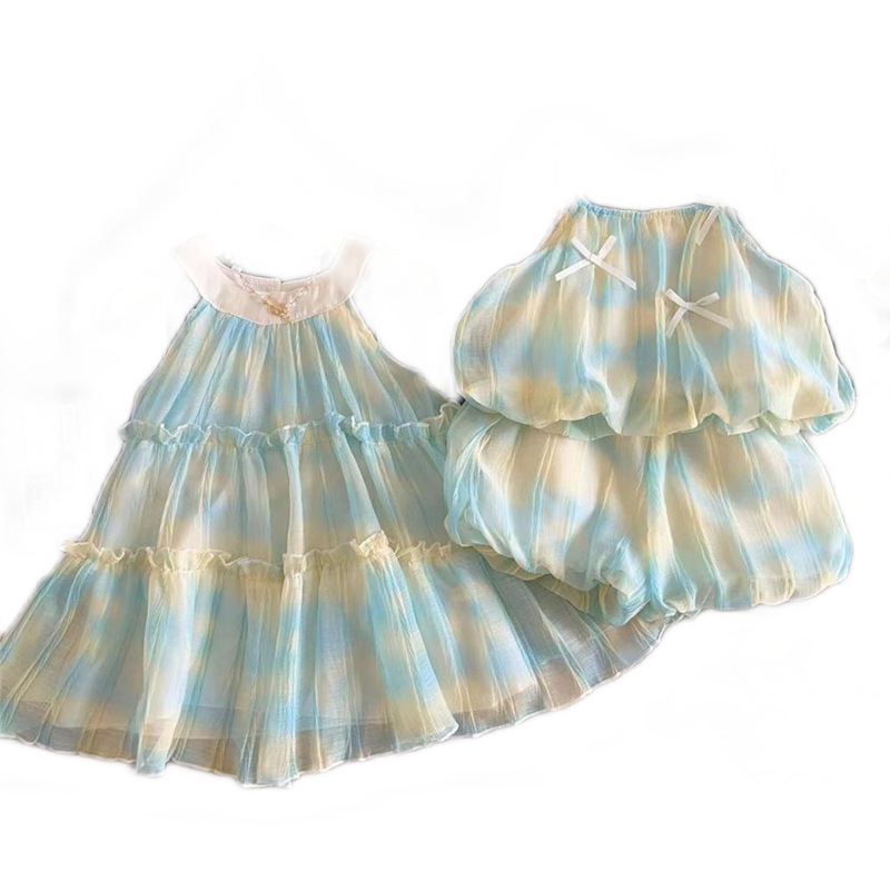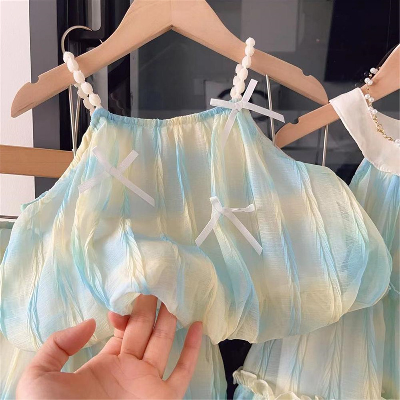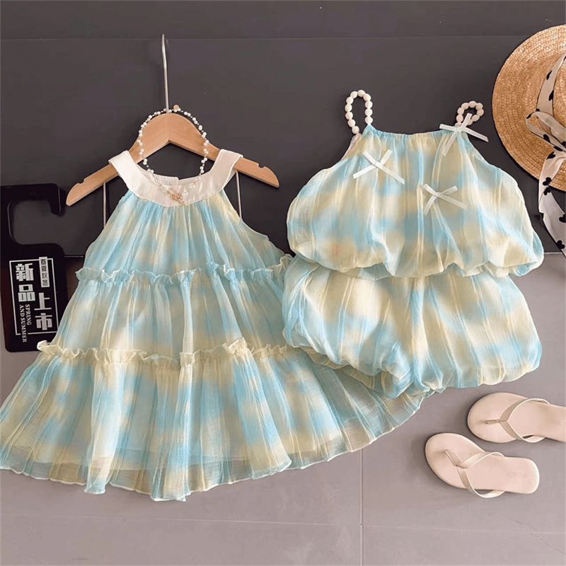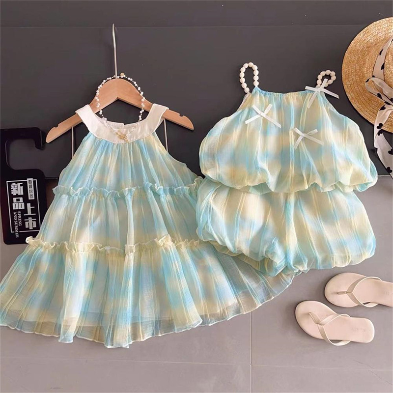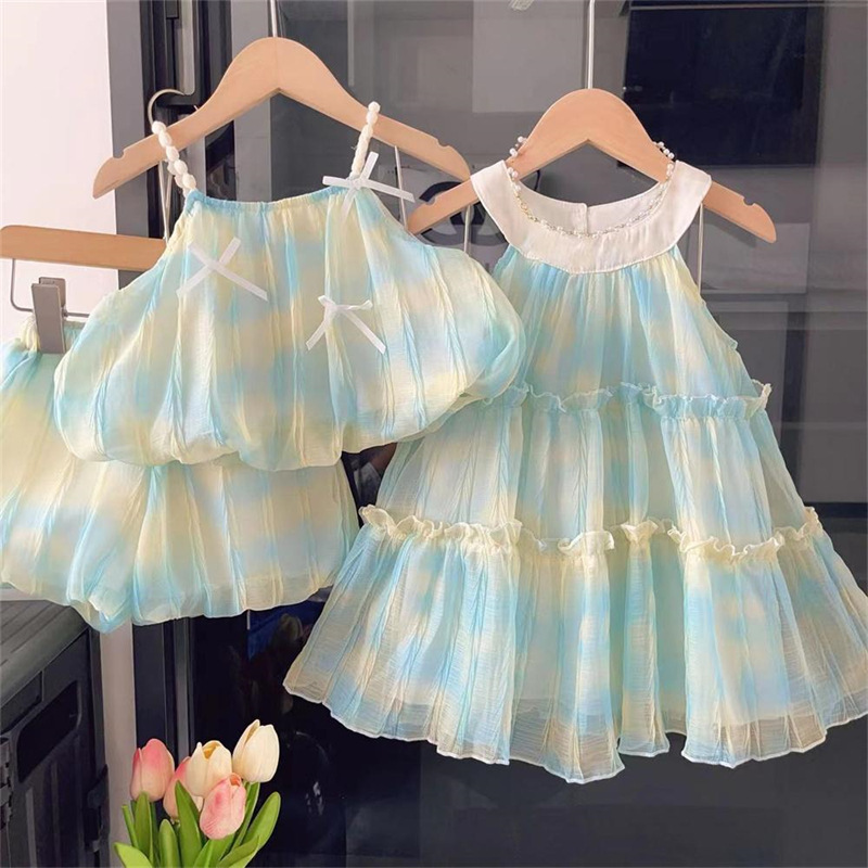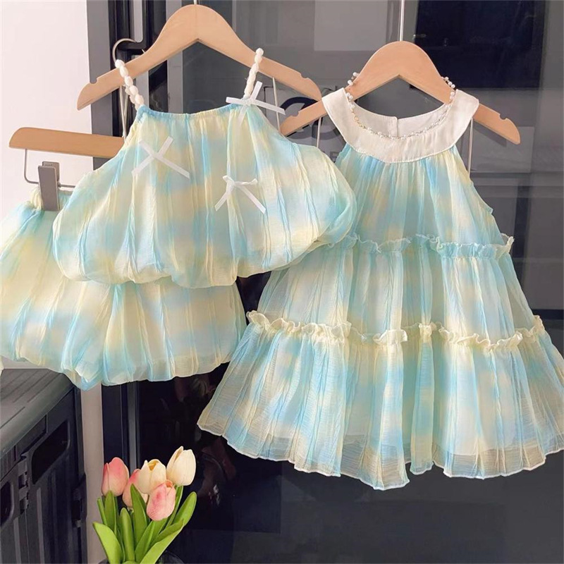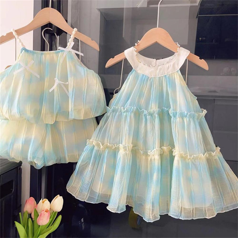 2025夏季新款韩版女童姐妹款夏清爽可爱款花苞两件套渐变公主裙潮