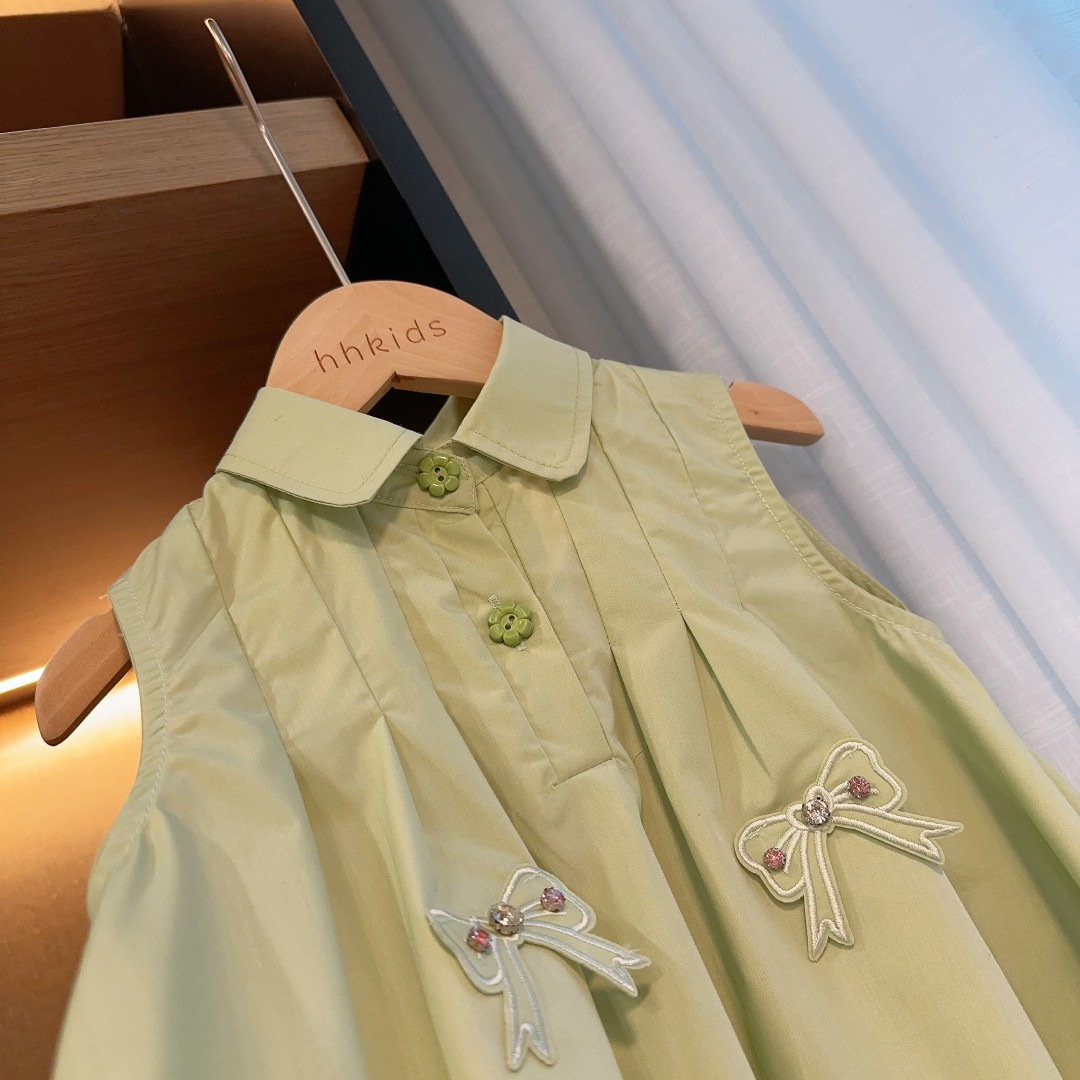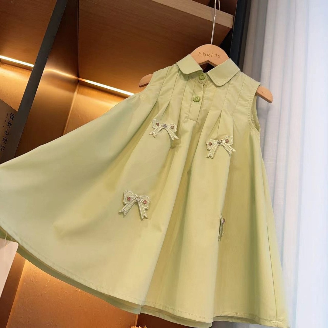 新品女童蝴蝶结连衣裙2025新儿童洋气无袖娃娃领中小童背心裙子