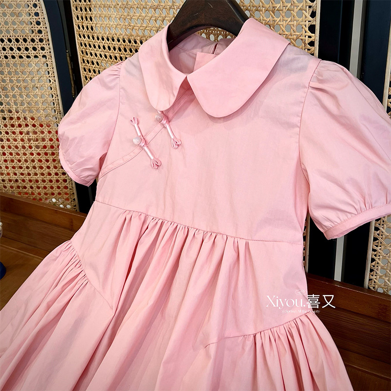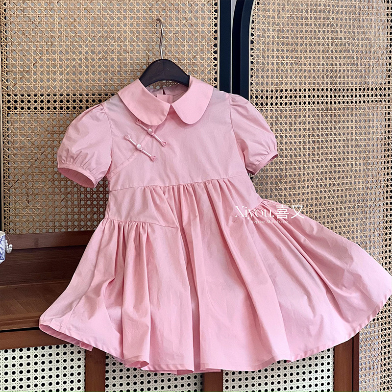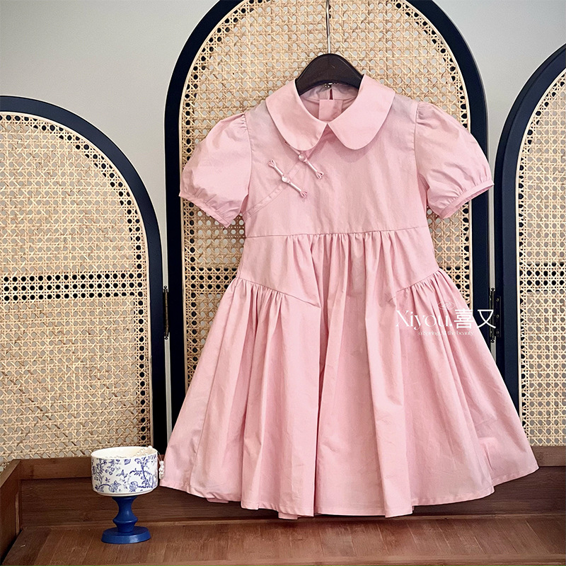 2025年夏季女童泡泡袖棉布裙新中式儿童女宝宝韩版中小童连衣裙