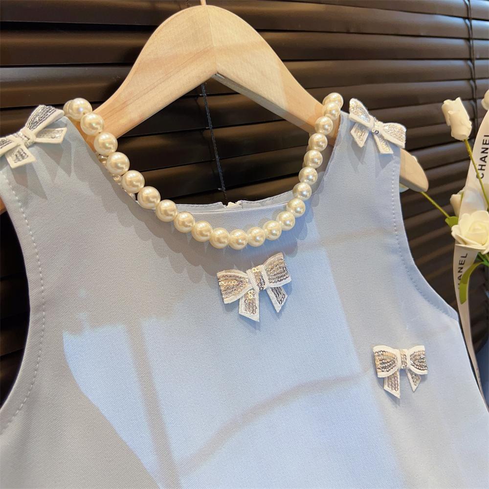 女童连衣裙夏装2025新款女宝无袖可爱背心裙时尚蝴蝶结公主裙子