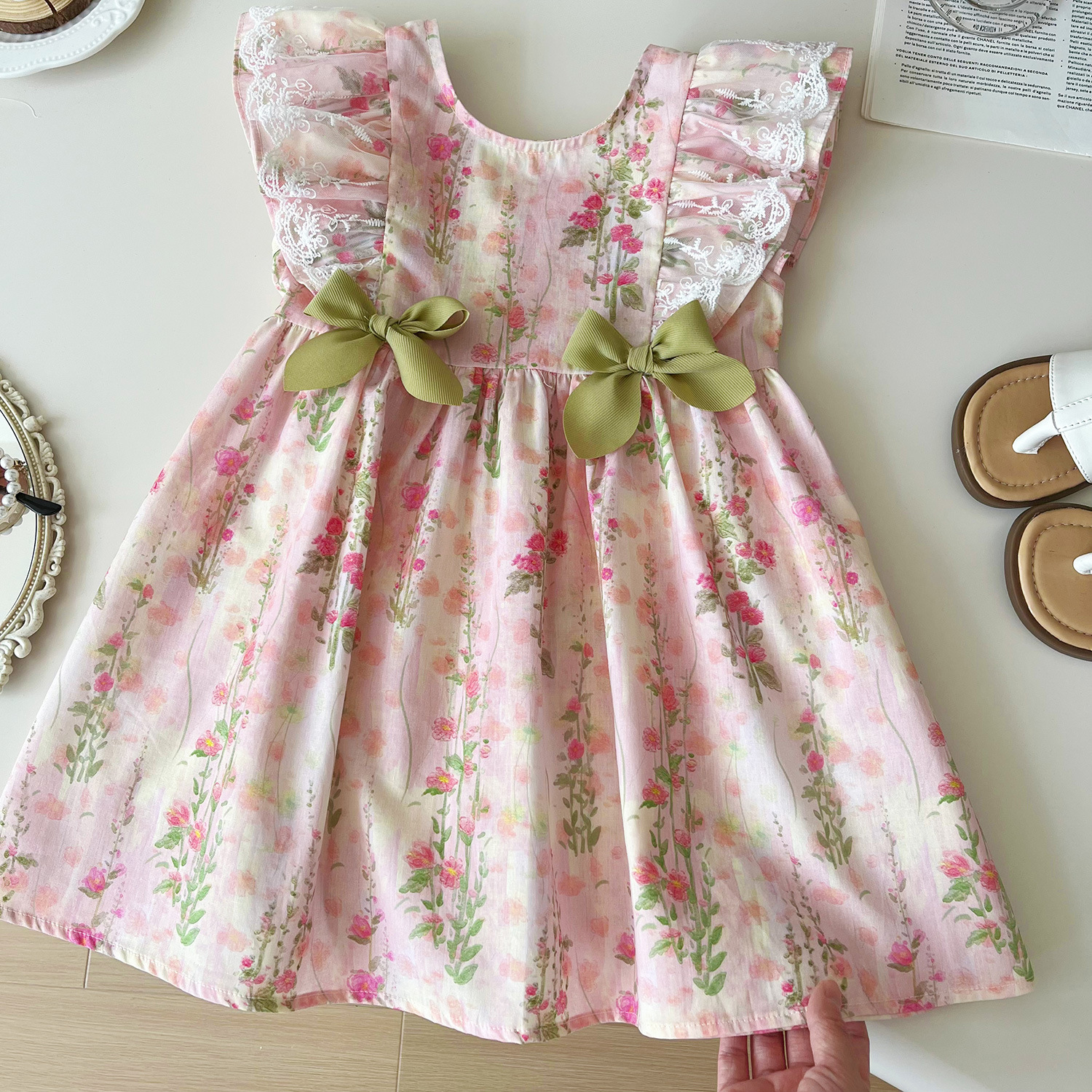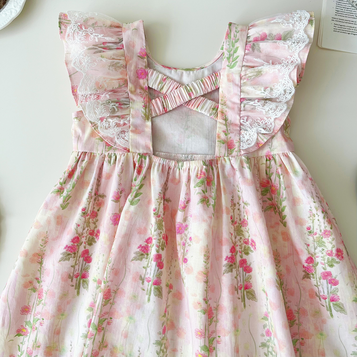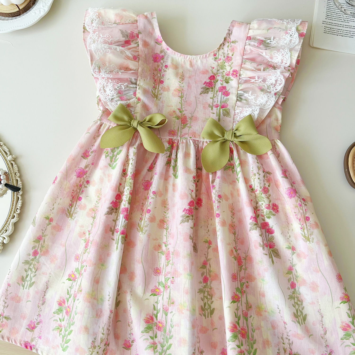 2025夏季新款韩版女童露背童裙宝可爱印花无袖木耳边中小童连衣裙