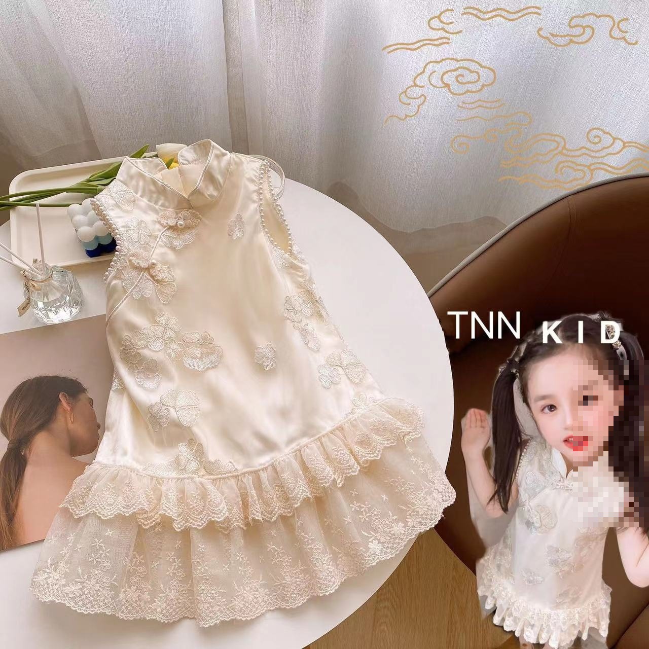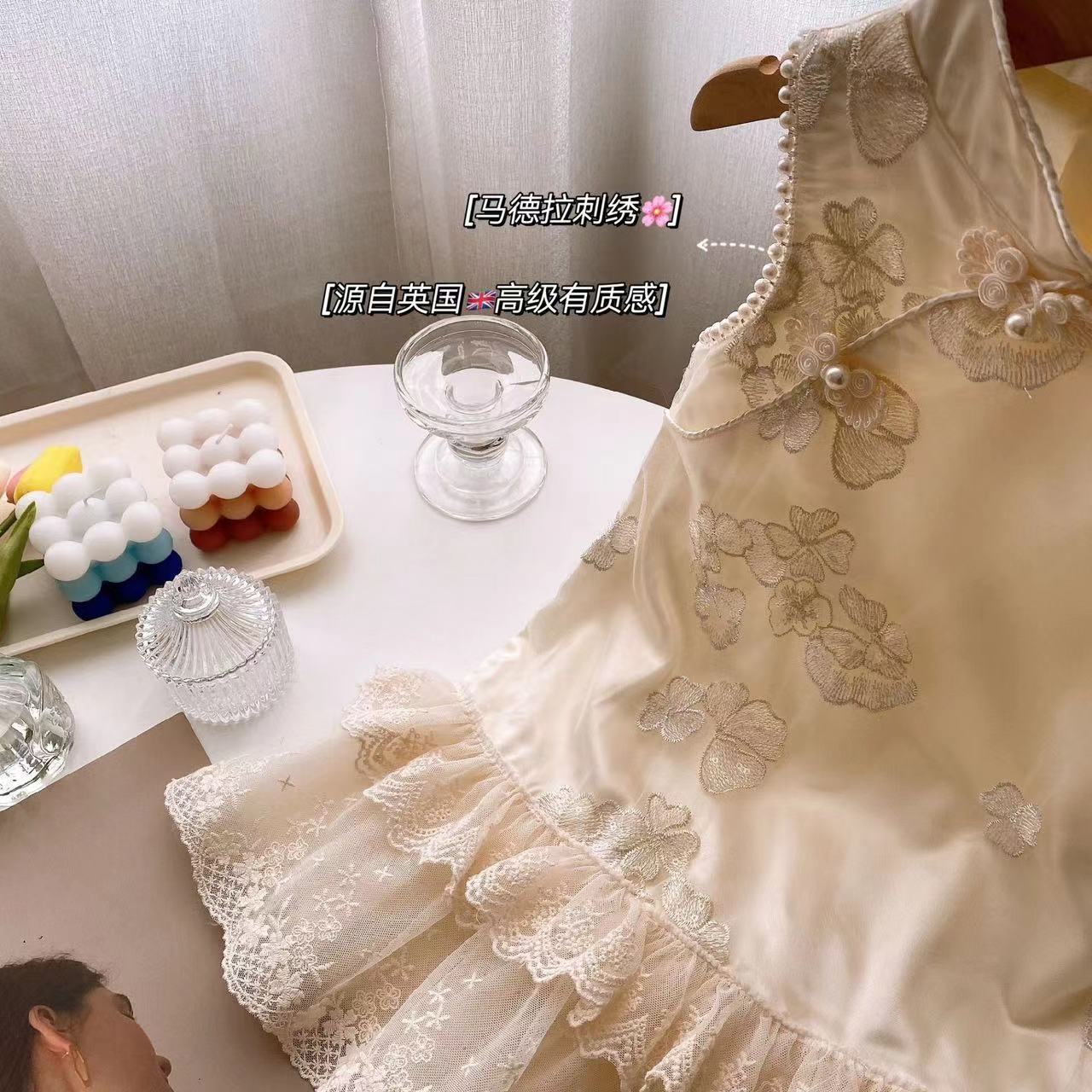 旗袍中小童女童连衣裙2025夏装新品淑女精致蕾丝公主裙