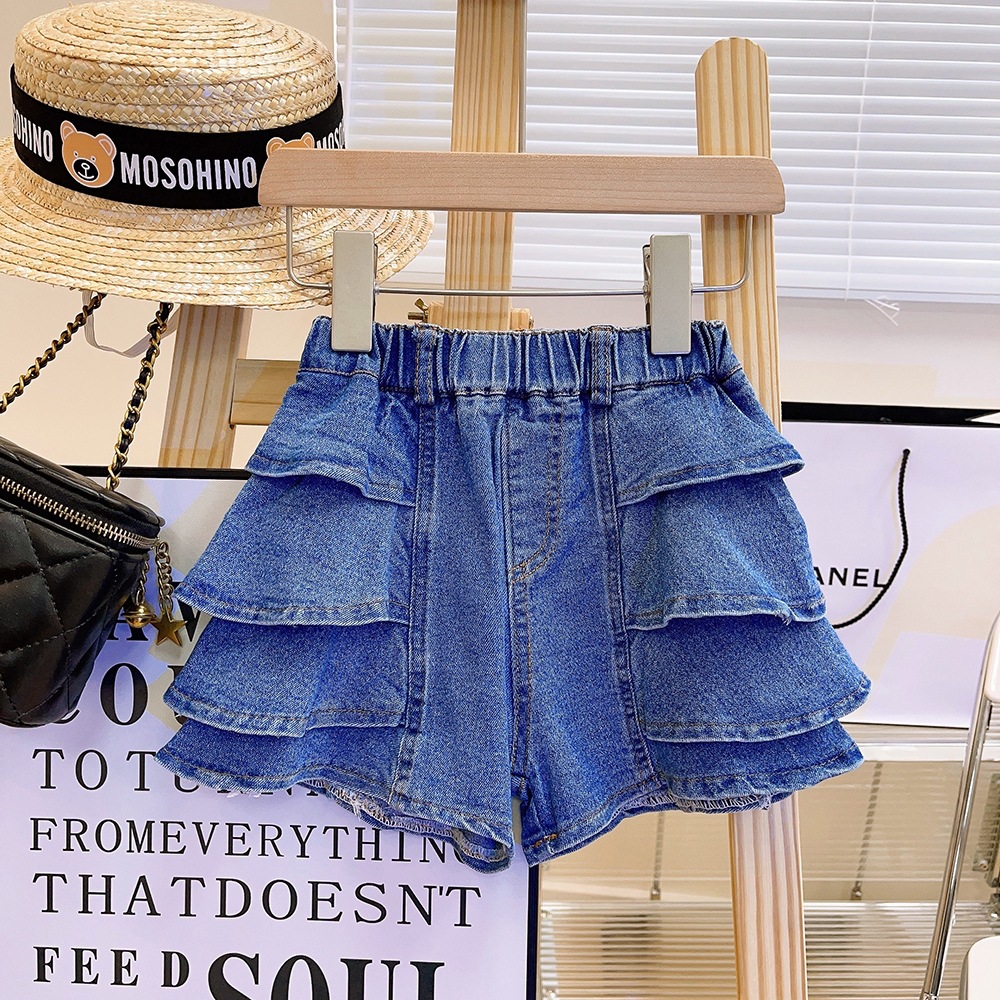 阔腿裤春秋韩版时尚百搭牛仔短裤2025夏季新款女童软荷叶边蛋糕潮