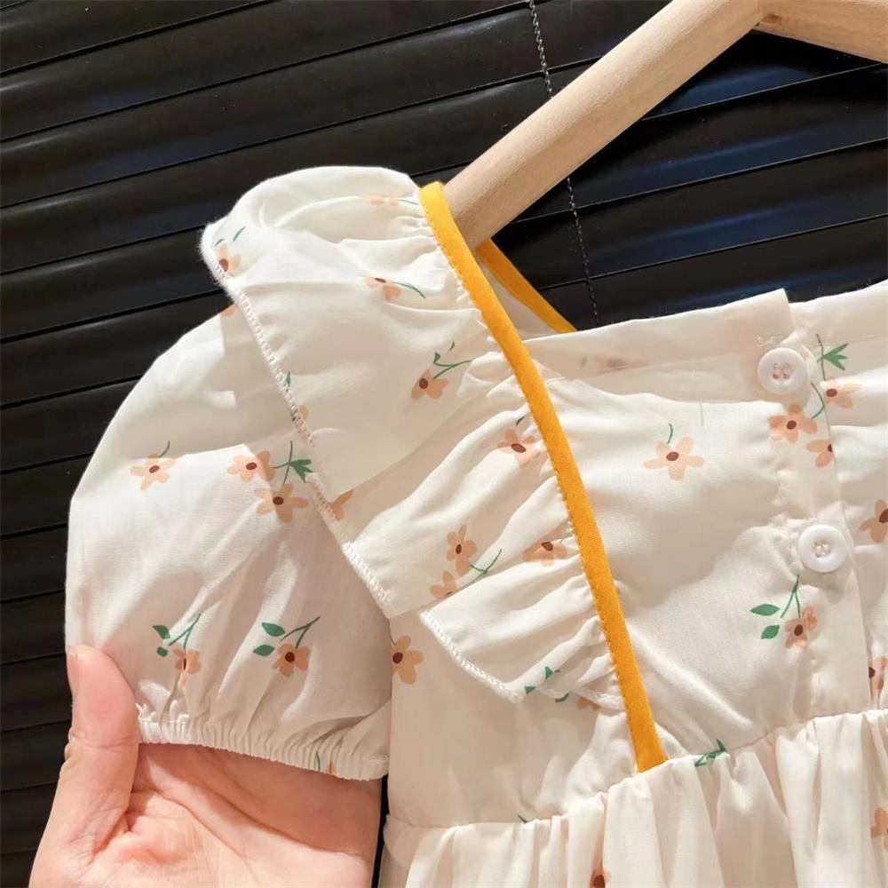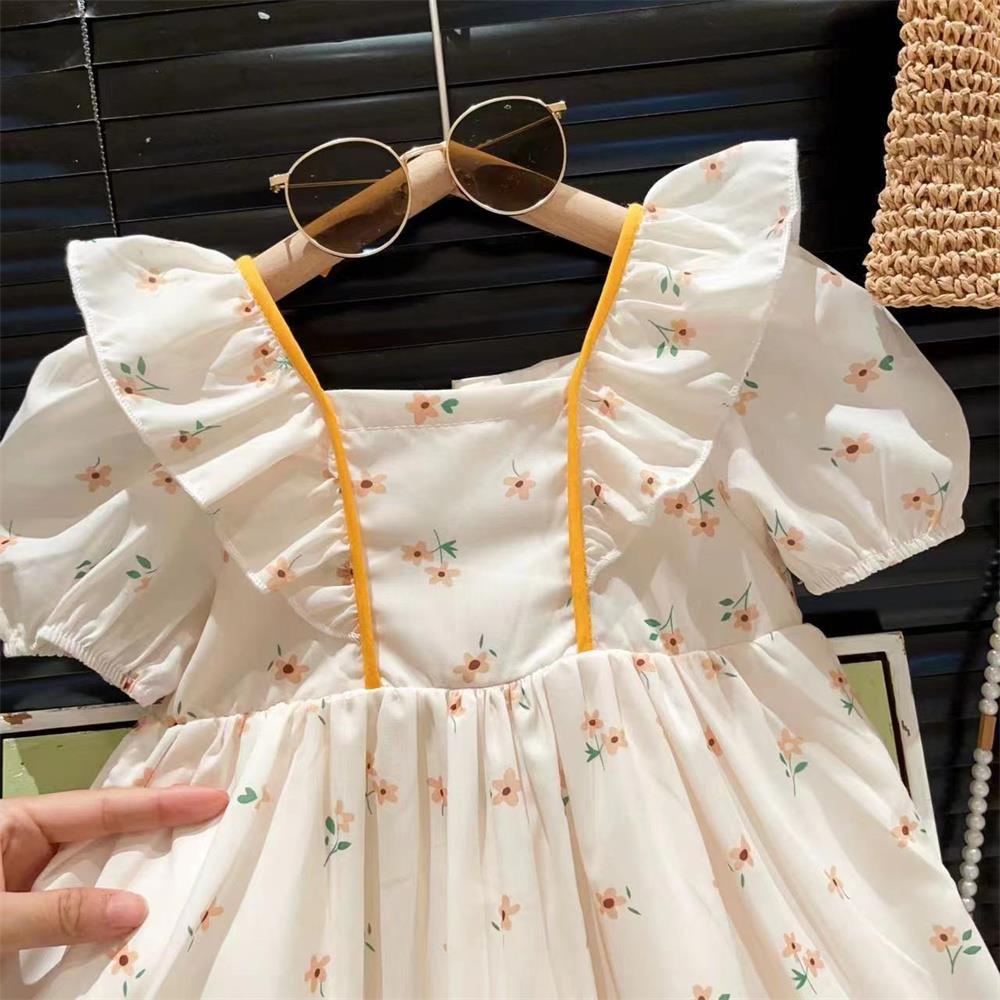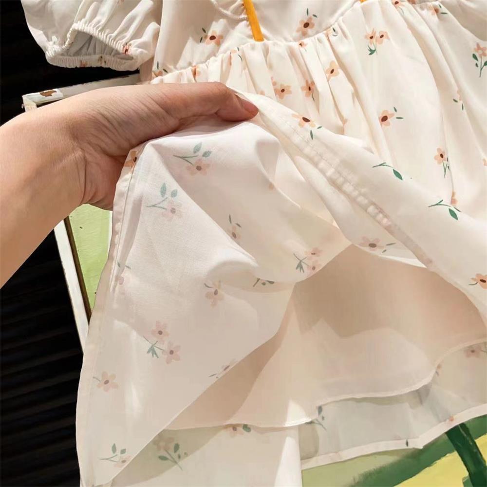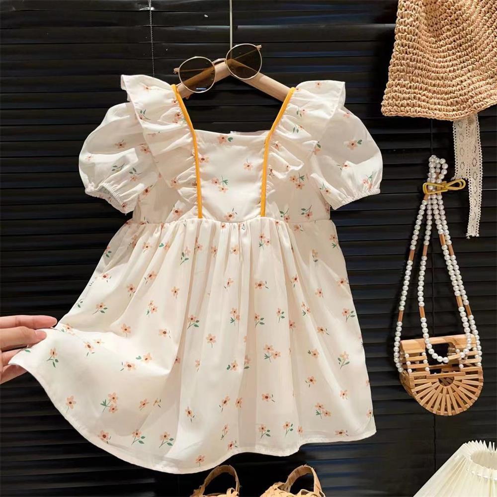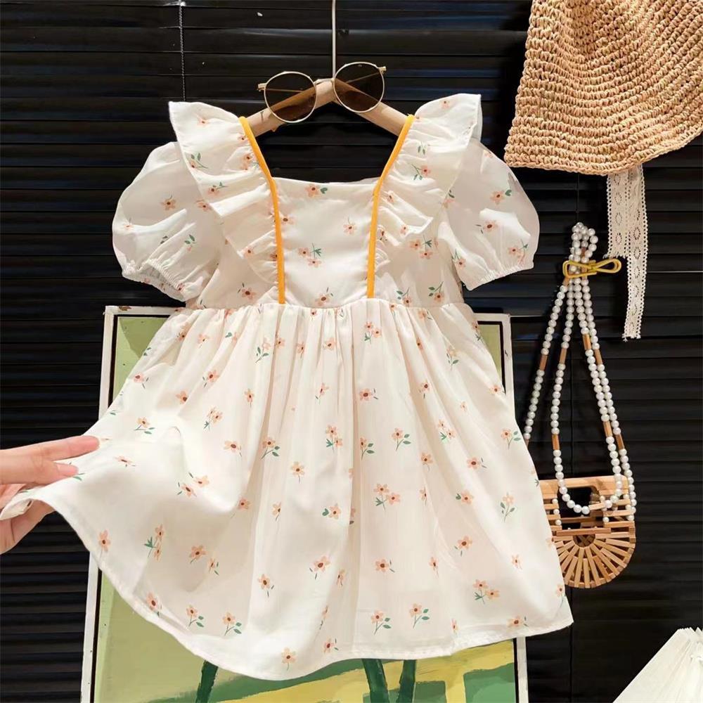 新品女童小清新花边方领泡泡袖小碎花洋气公主裙2025夏装连衣裙