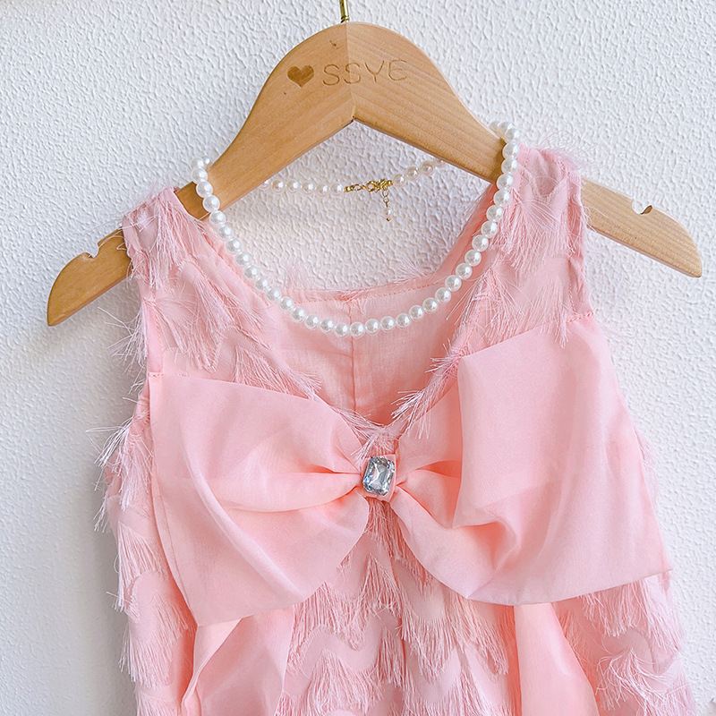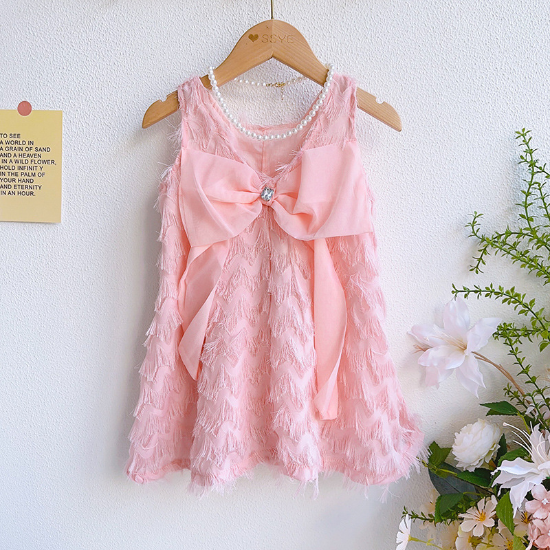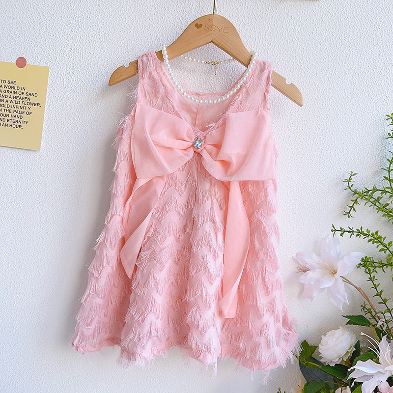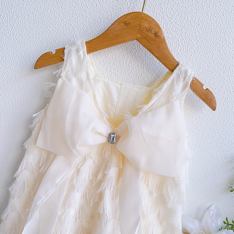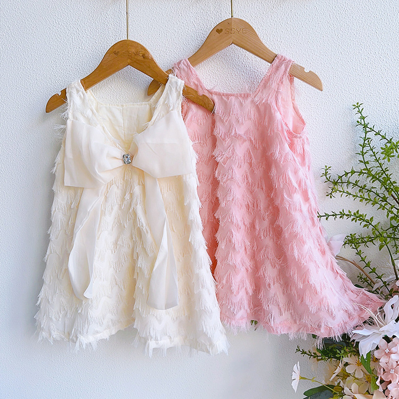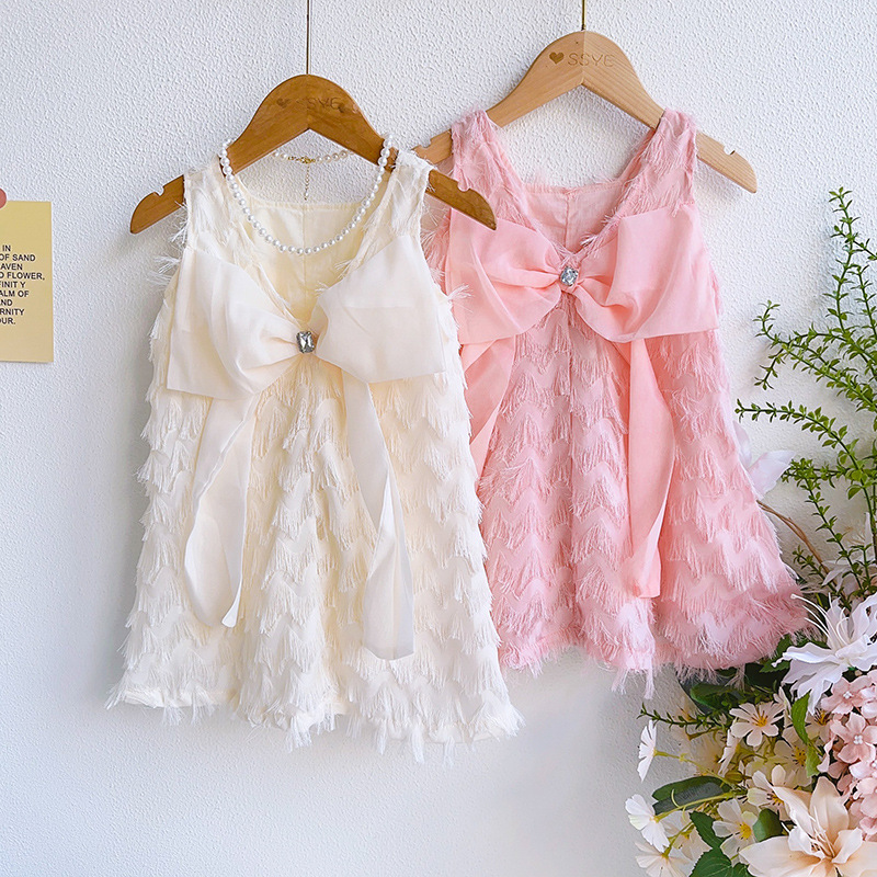女童2025夏季新款流苏立体背心连衣裙温柔风蝴蝶结公主裙裙子