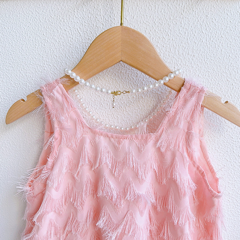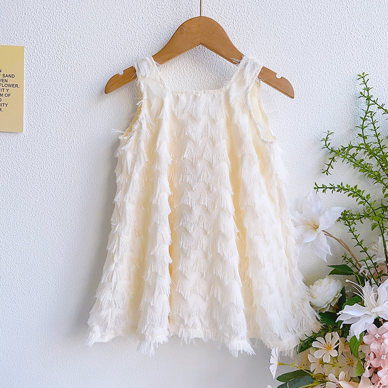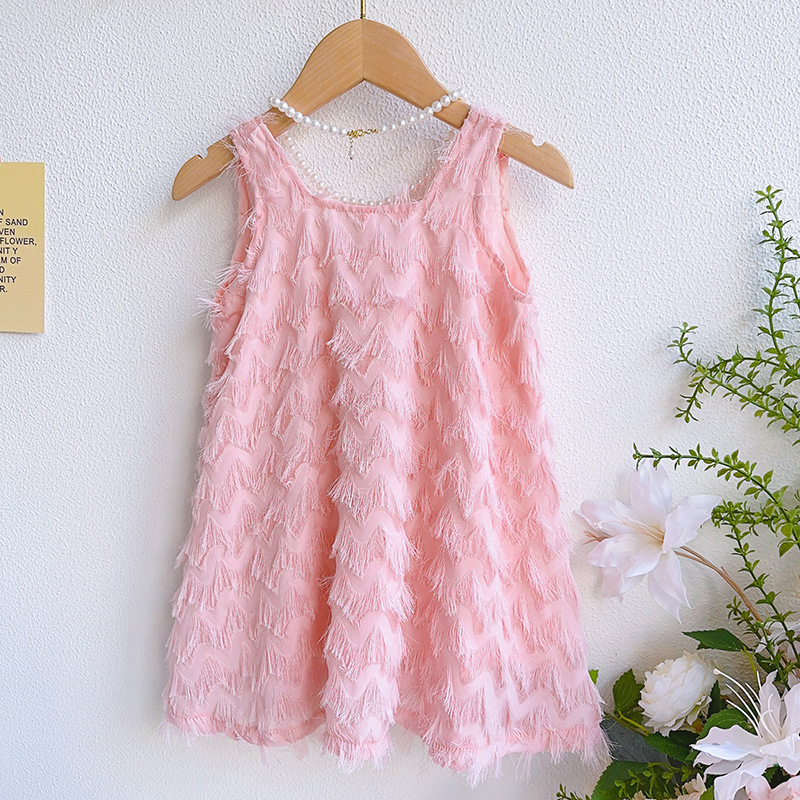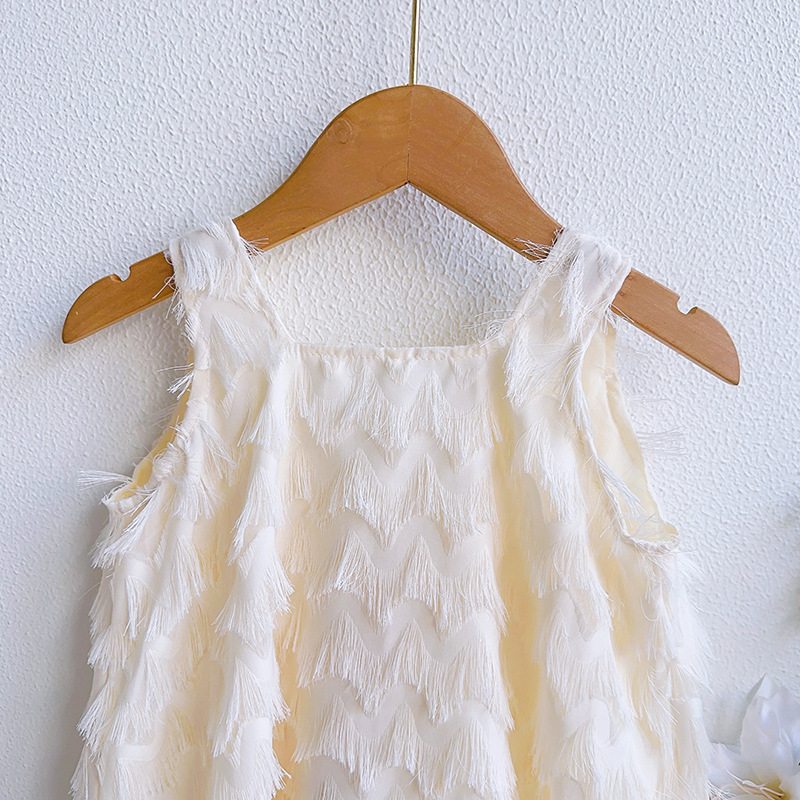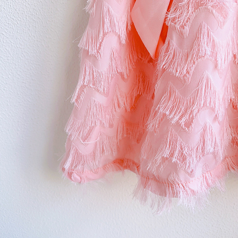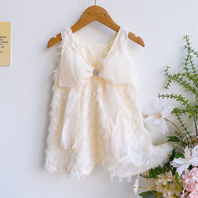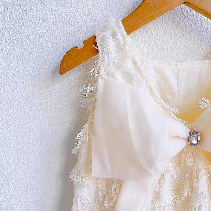 女童2025夏季新款流苏立体背心连衣裙温柔风蝴蝶结公主裙裙子