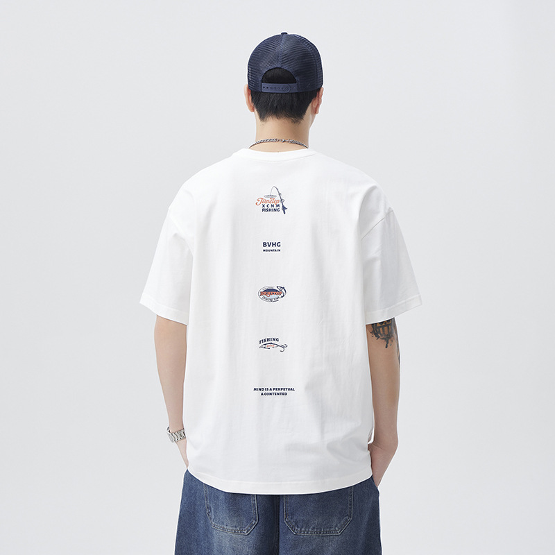 210g纯棉t恤男士宽松百搭夏季新款美式印花短袖打底体恤大码上衣