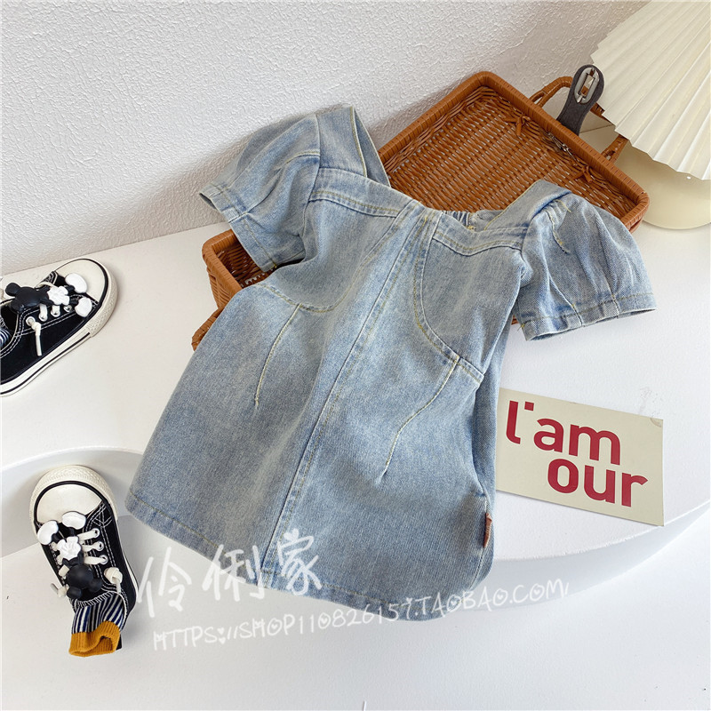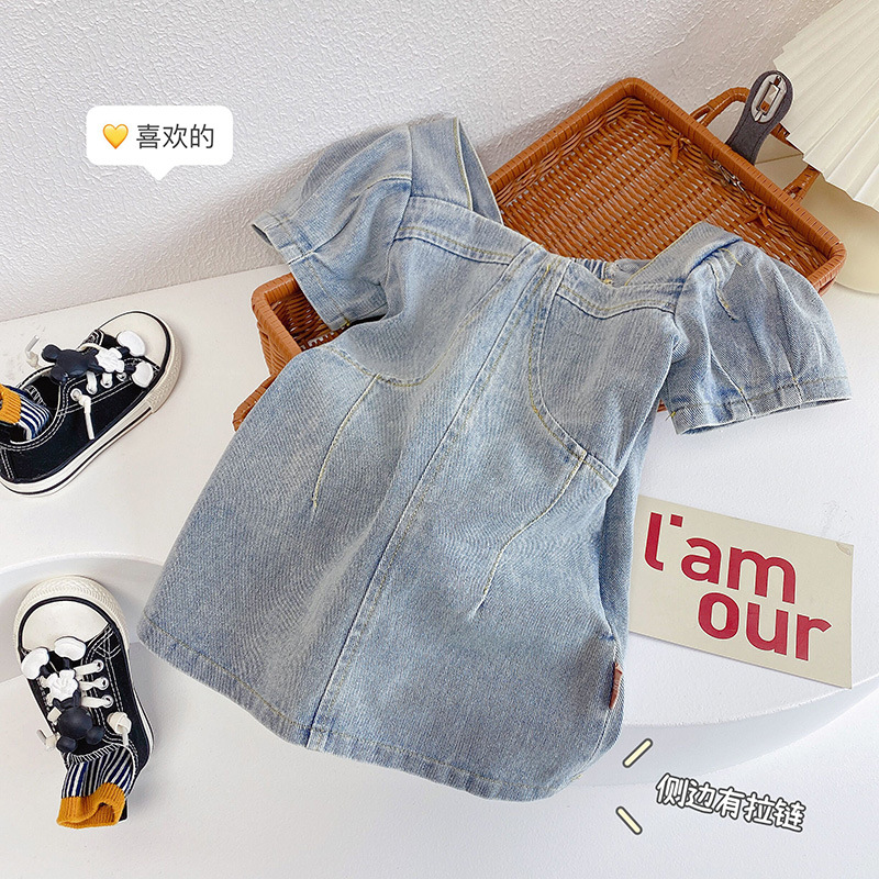 女童韩版网红牛仔短袖连衣裙2025新款夏装小童宝宝洋气泡泡袖裙子