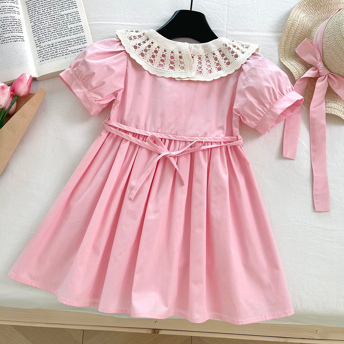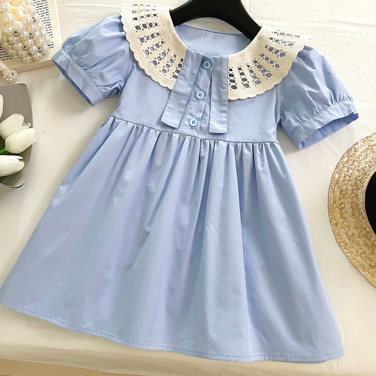 2025夏季新款韩版女童纯色短袖可爱宝宝公主儿童连衣裙