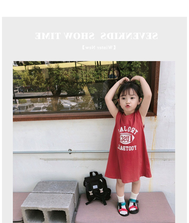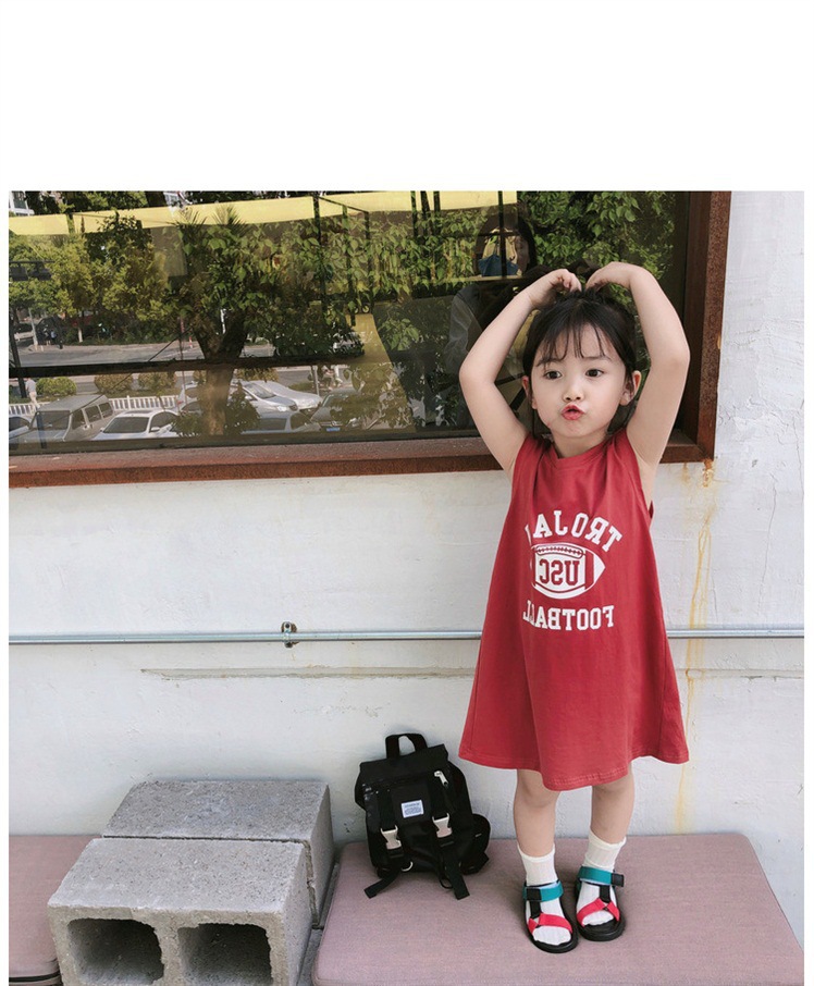 女童背心裙儿童长款t恤字母宝宝无袖连衣裙夏沙滩裙凉快宽松体恤