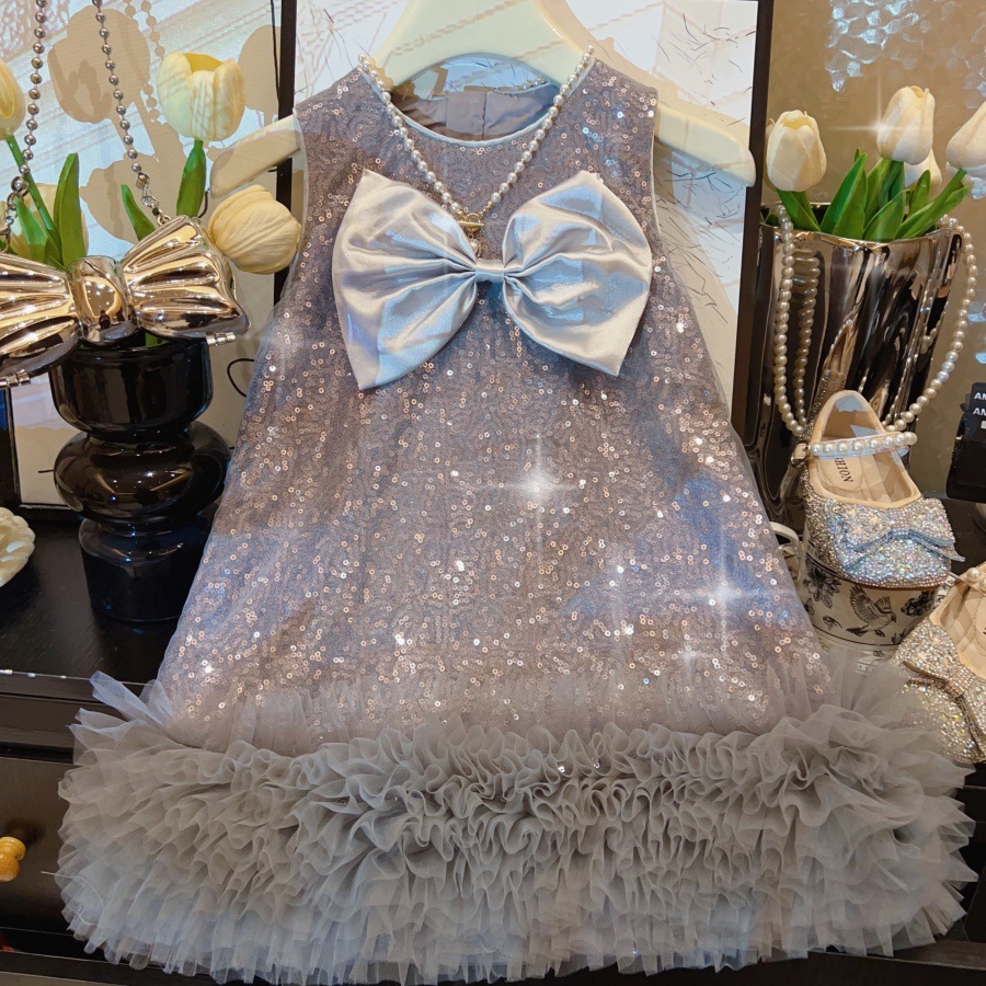 女童夏装连衣裙2025新款礼服儿童亮片蝴蝶结背心裙新品公主裙