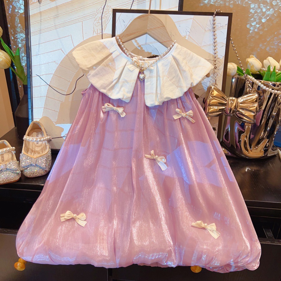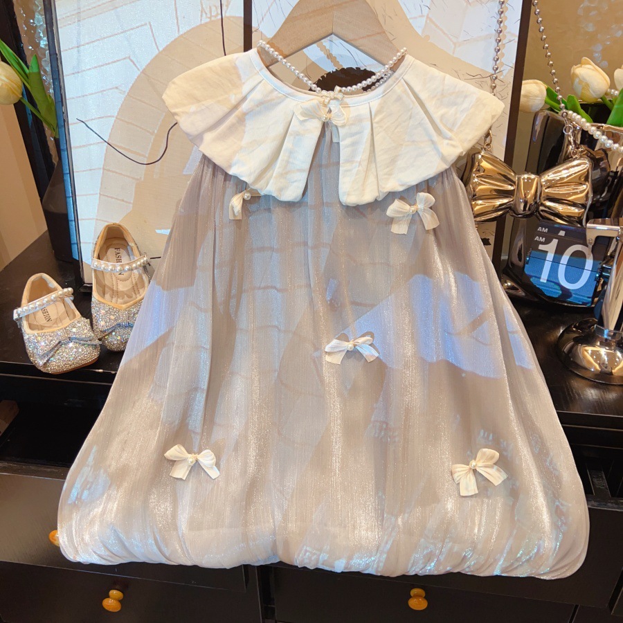 2025宝宝miu系连衣裙洋气暮云纱蝴蝶结无袖公主裙