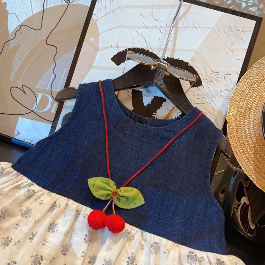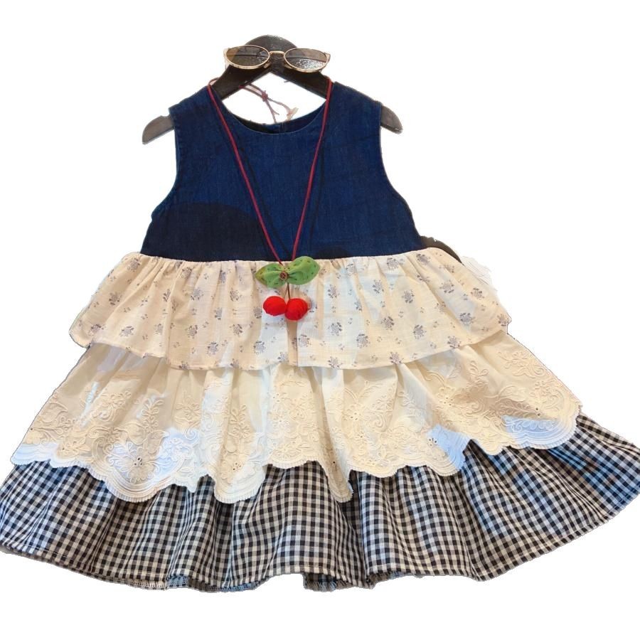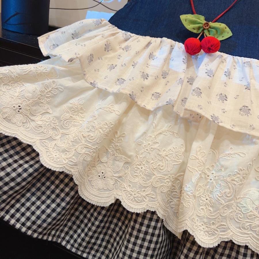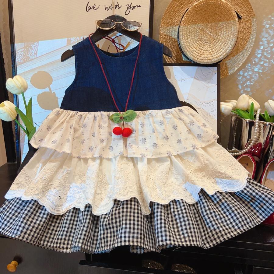 2025森系无袖背心裙碎花格子拼接新品牛仔裙叠穿洋气背心裙蛋糕裙